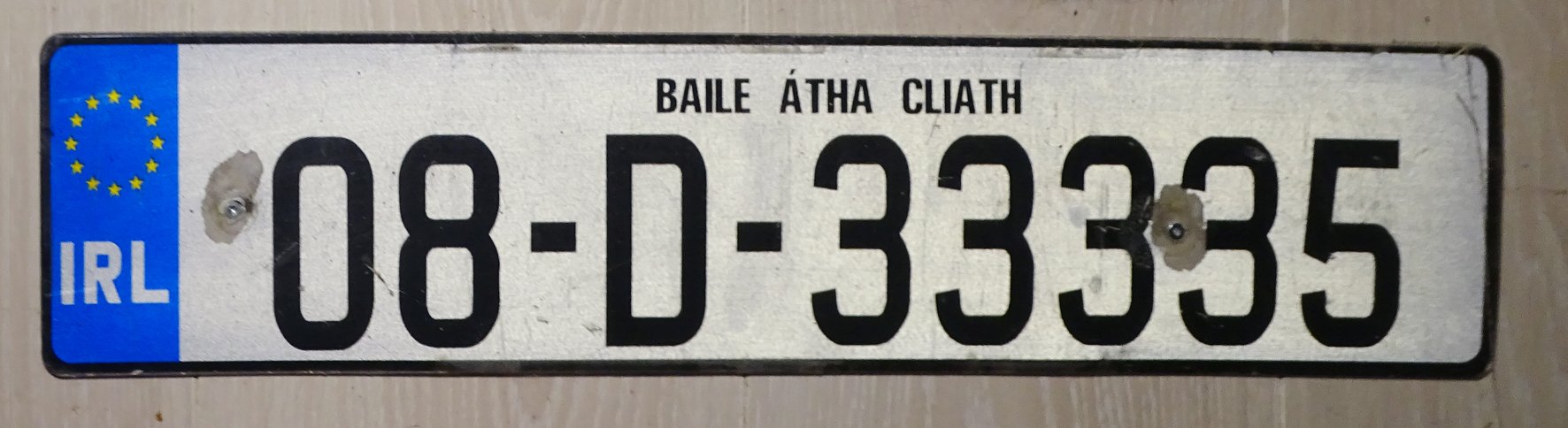 Aan Ierse nummerplaten kan je zien vanwaar het voertuig afkomstig is, zie boven. Eigen verzameling.