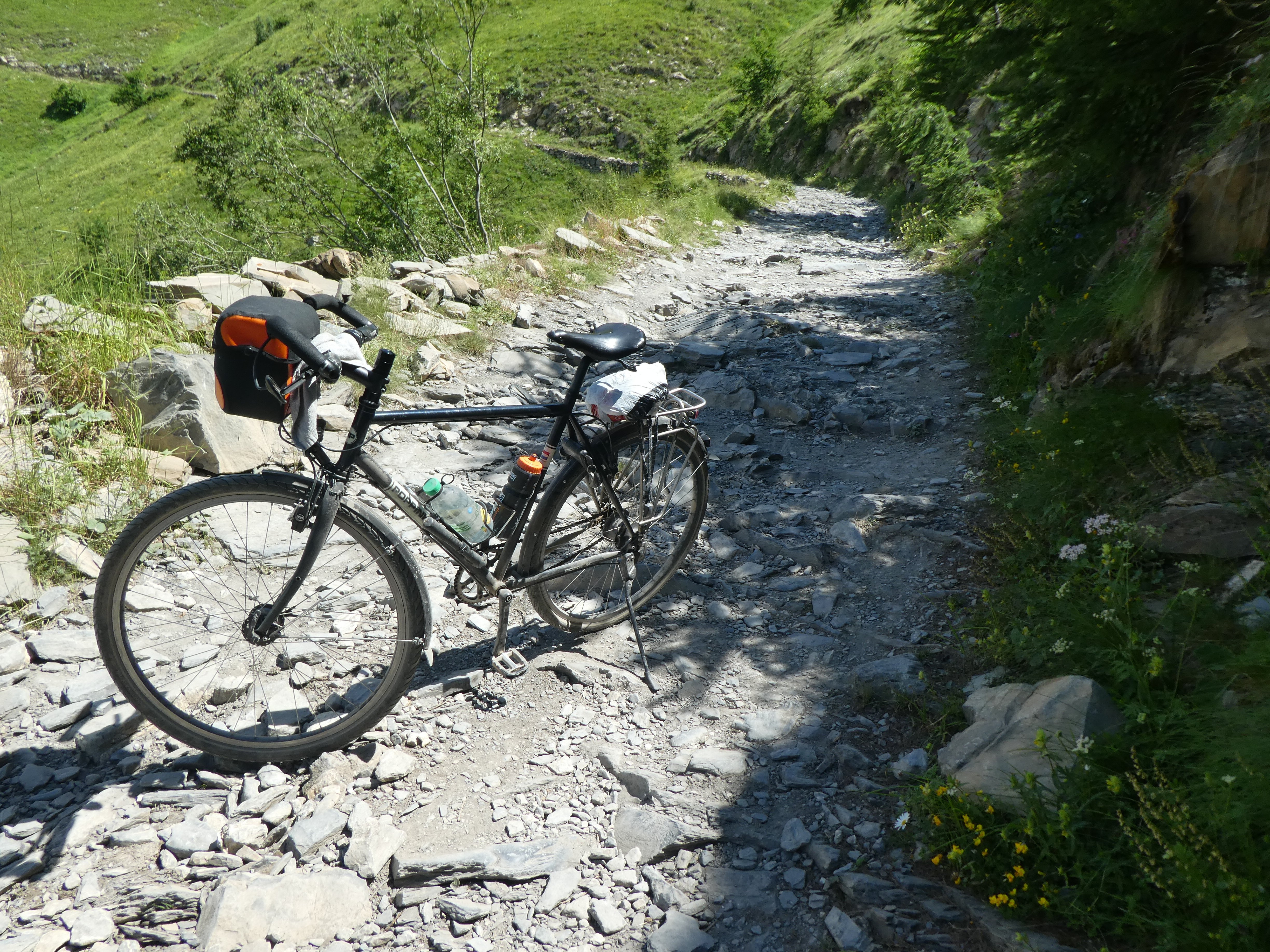 Ik zou dat wel eventjes doen. Fietsje zonder bagage, fles driinken, windjackje mee en zo'n lekker brood. Vroeg op pad, col de Tende op, even naar benden aan de Italiaanse kant, alcoholvrij biertje pakken en de Via del Sale op. Dat is geen gladde weg.