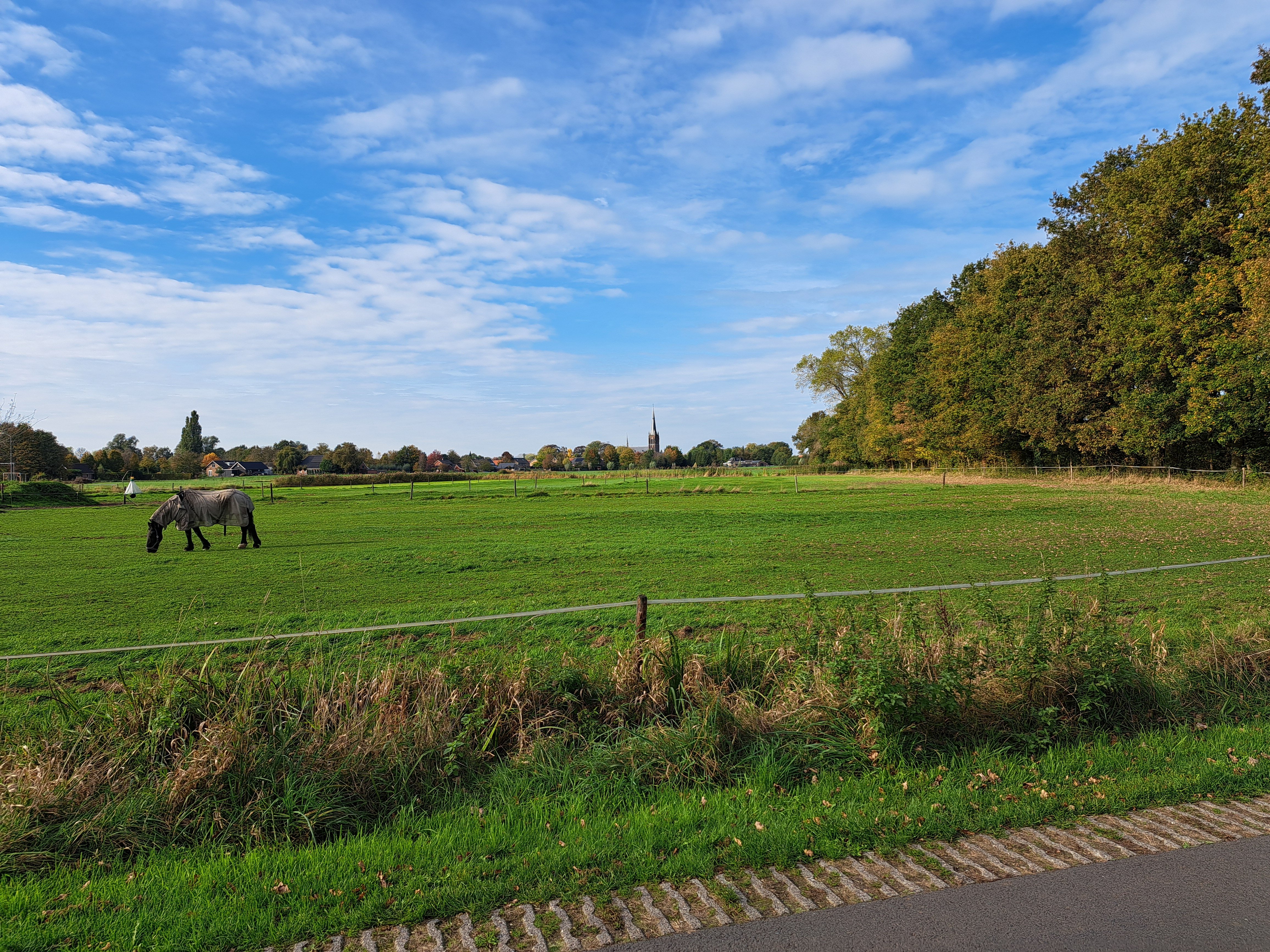 Zieuwent, vanaf de Roldersweg gezien. Merkwaardig genoeg is die kerk met de toren naar het oosten gebouwd (normaal naar het westen) en ik zocht iets te zuidoosten daarvan een rij bomen en voilà!