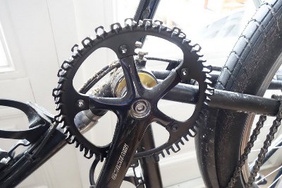 Dan het voortandwiel. Termen als '130BCD' waren mij onbekend moet ik bekennen, maar zo leer je weer wat. Het type tandwiel blijkt afhankelijk van het cranckstel. De meest voorkomende variaties daarin zijn 4 en 5 arms, en 104, 110 of 130BCD. Zie voor meer info over BCD (Bolt Circle Diameter) en over hoe je zelf kunt meten welke je hebt: