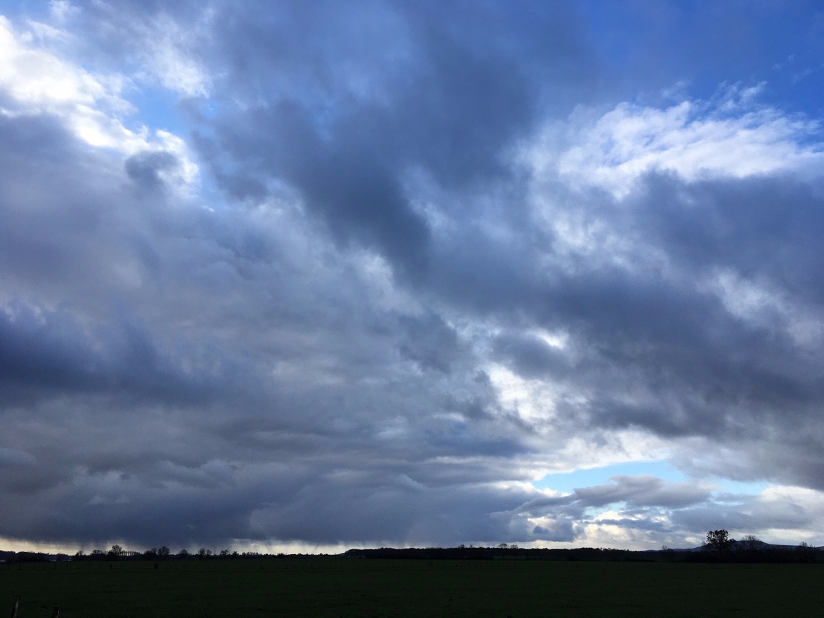 De zuidenwind is nog steeds van de partij maar langs de rivier zijn er vele hagen geplant, ik zit veel meer beschut dan gisteren. En de zon is er terug wat de het ene na het andere prachtige plaatje oplevert. Vandaag is het landschap niet zo indrukwekkend, het is de lucht die alle aandacht opeist.