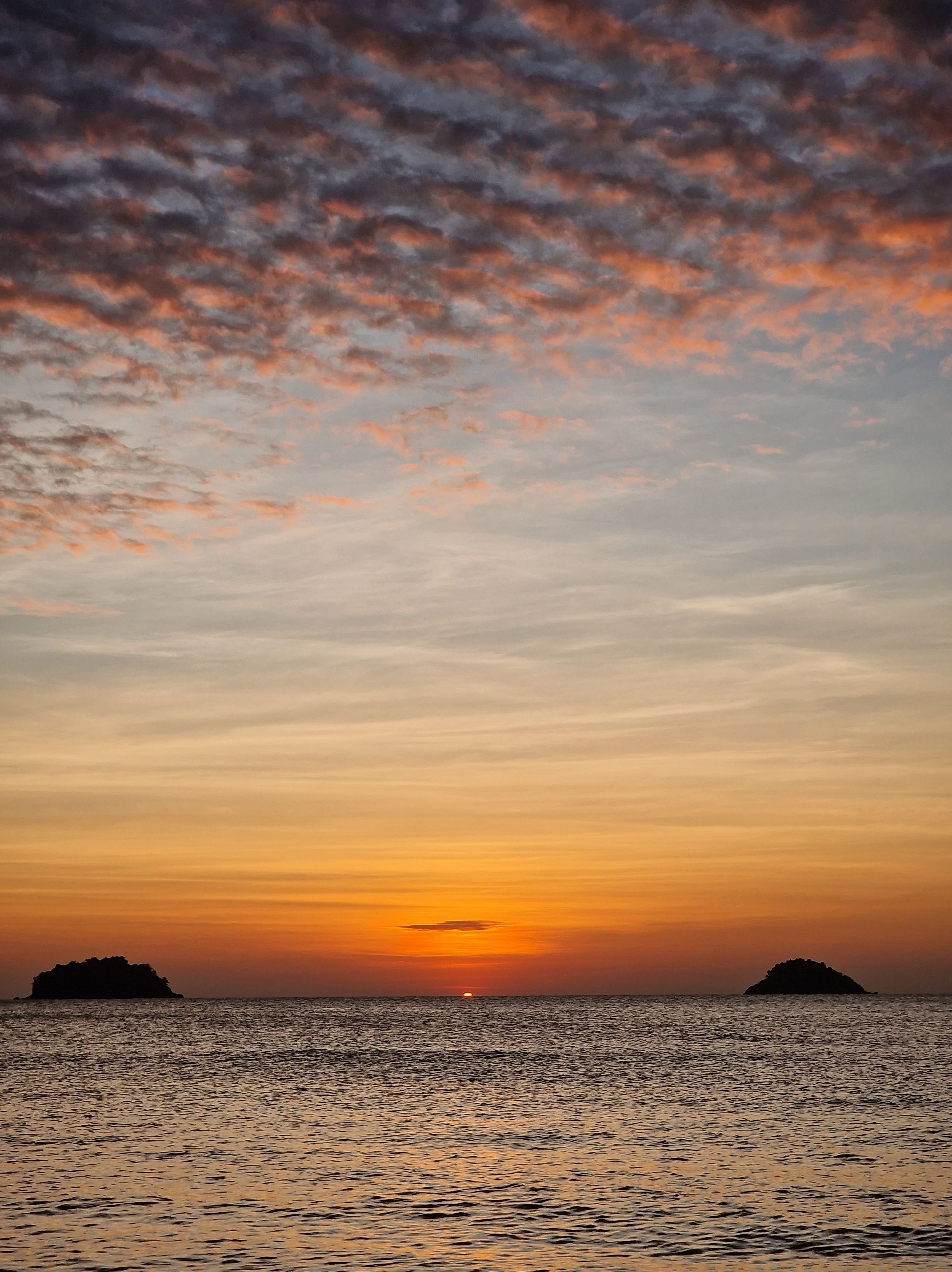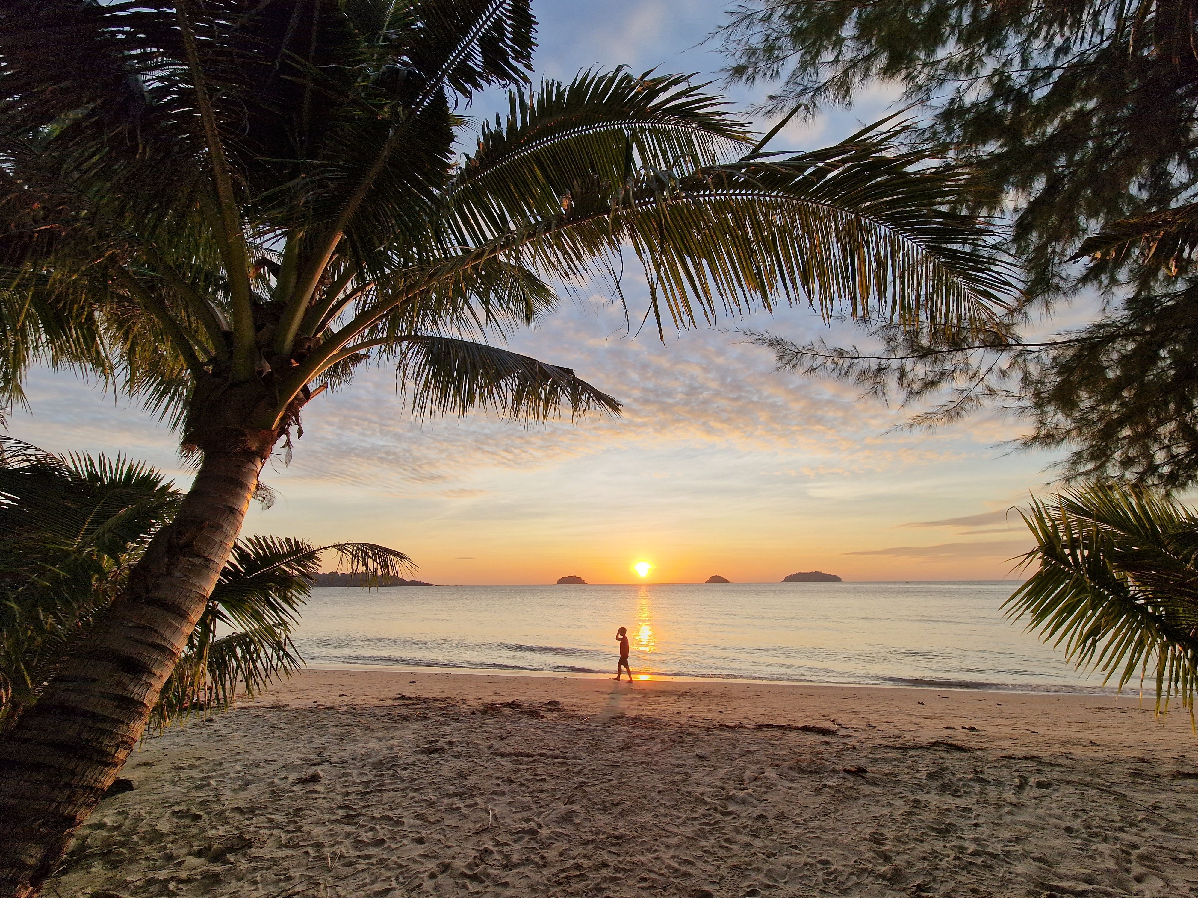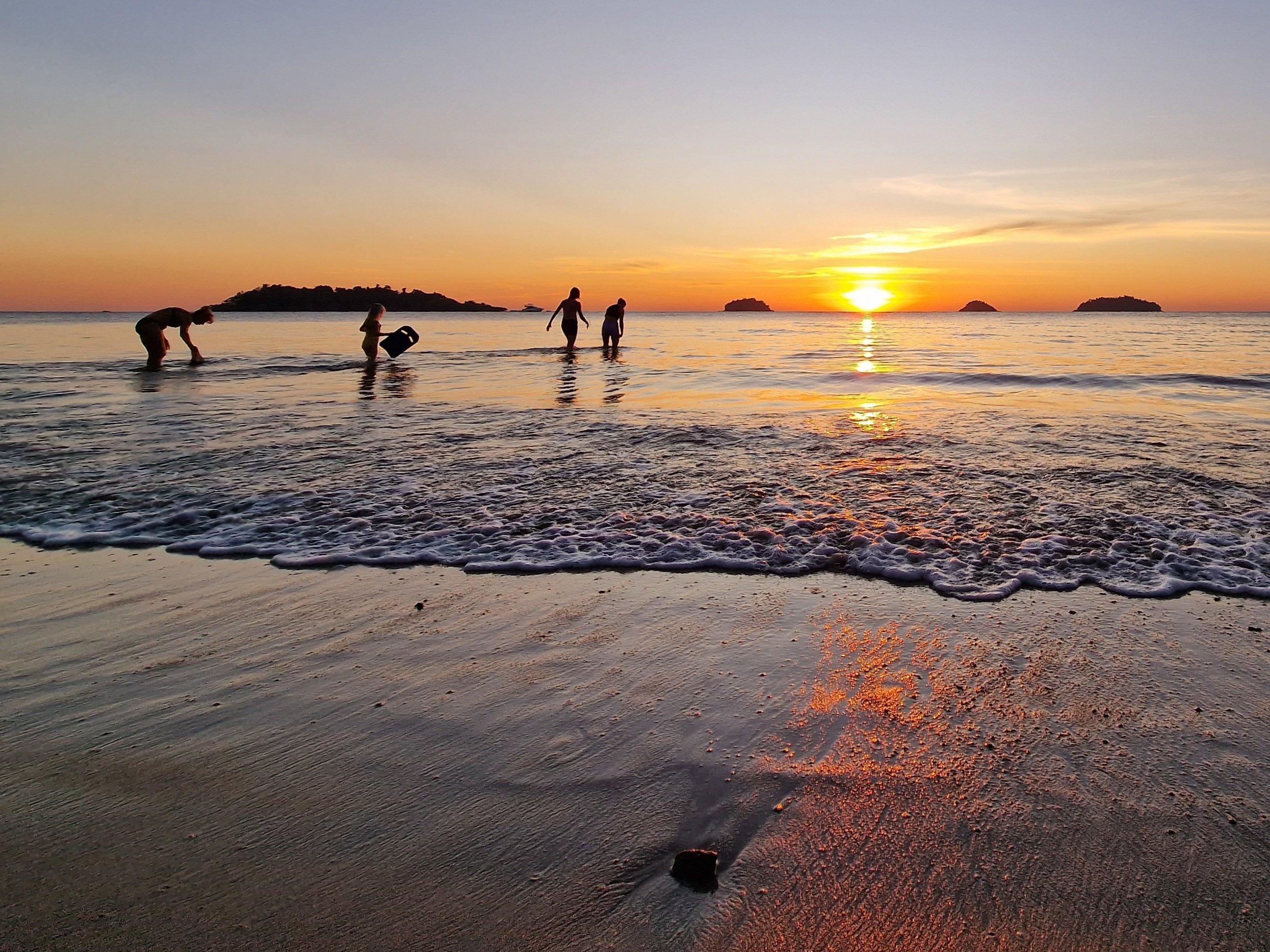’s Avonds neem ik nog een allerlaatste zonsondergang mee, beseffende dat ik morgen met de taxi terugkeer naar Bangkok. Gelukkig is de pret nog niet afgelopen. In Bangkok wachten mijn vrouw en kinderen me op voor nog twee extra weken strandvakantie in Krabi in het diepe zuiden van Thailand. Zonder fiets weliswaar.
