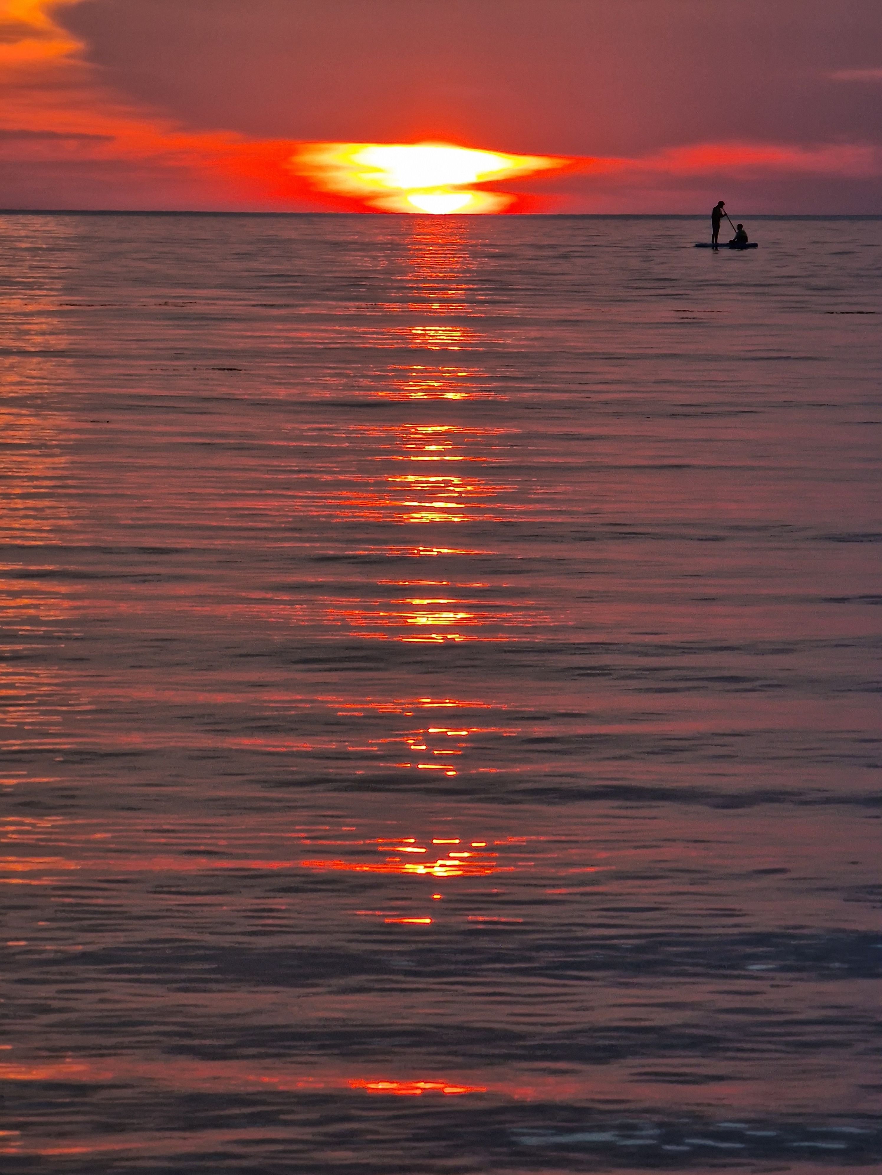 Ondertussen scrol ik door mijn foto’s, maak ik een selectie en zet wat horizonten recht. Wanneer ik even niet op mijn kleine schermpje kijk zie ik dat de omgeving baadt in een bijna buitenaards rood licht. Wat gebeurt hier? Ik ren terug naar het strand en zie die grote grijze wolkenmassa van daarnet dieprood kleuren en een grillige wervelende gelaagdheid vertonen. Avondrood. Maar niet zomaar avondrood. Het hevigste, meest indrukwekkende avondrood dat ik ooit in mijn leven zag. Mijn shutter maakt overuren want dit wil ik absoluut vastleggen. Tussen de foto’s door kijk ik rond en tracht ik de rode sfeer zo goed mogelijk te absorberen. Life on Mars. Dit. Is. Prachtig.