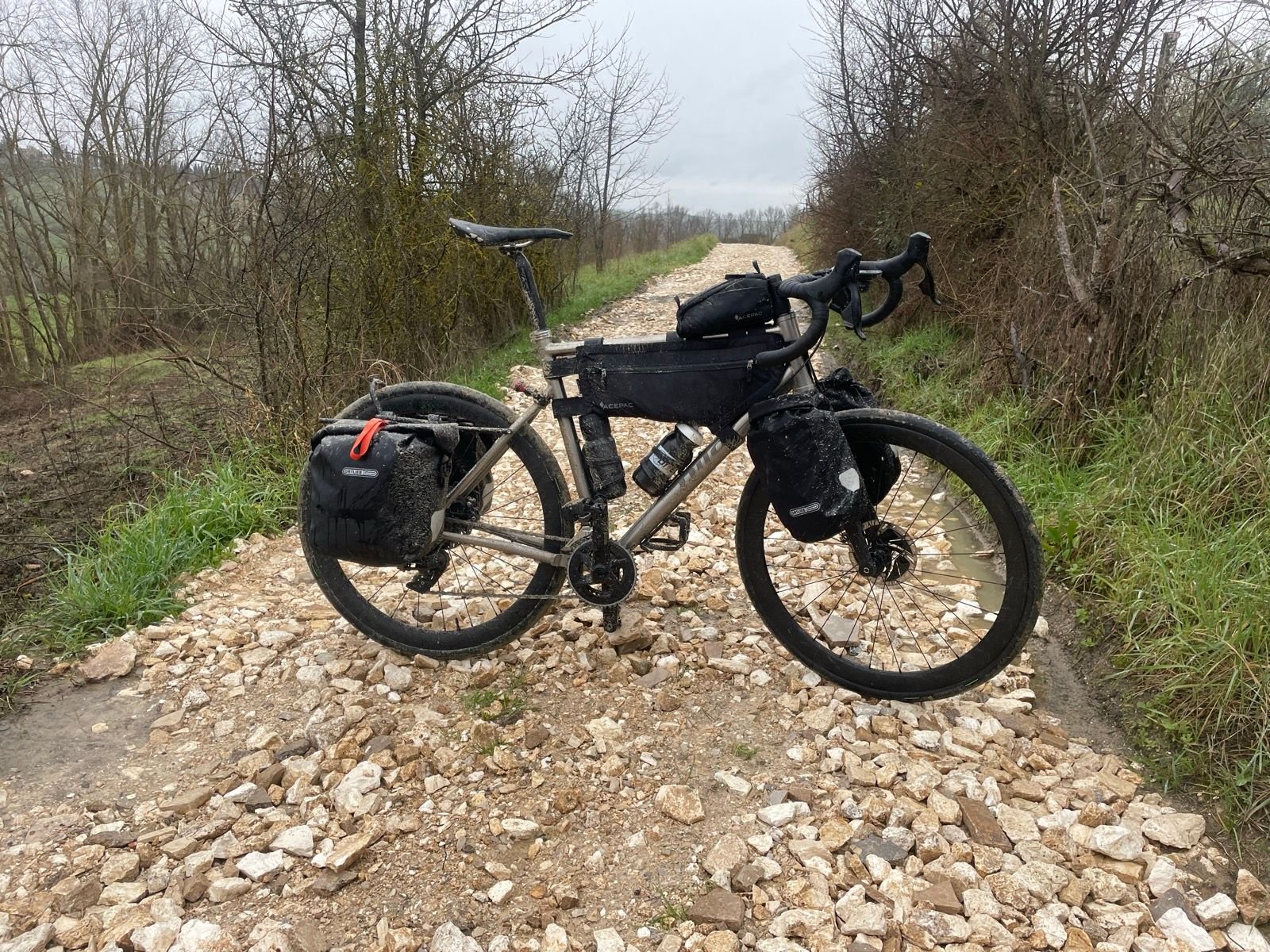 Nu met minder bagage en goede verdeling 4 dagen door Toscane gefietst. Ging als een zonnetje. Gewicht goed verdelen, dingen als opladers etc had ik in frametas. Stabiel en zonder trillen. Tita niet het stijfste (scram lijkt wel op rowtag), maar met goede verdeling en niet te veel gewicht gaat het bij mij dus ok, ook met losse handen.