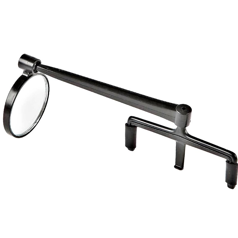 Ik gebruik al jaren een spiegeltje op m'n pet of bril, zowel bij het fietsen als het roeien en door m'n hoofd slechts een graad of 3-4 naar links of rechts te draaien zie ik zo goed als alles achter me.