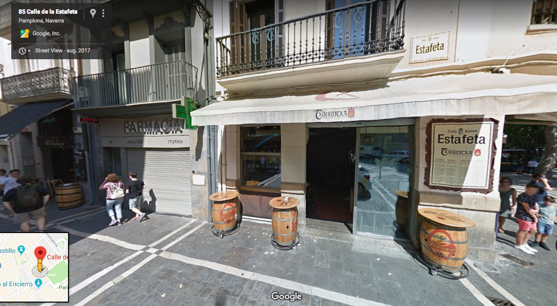 Als we dan toch zó precies zijn dan is het eerder voor de deur van Calle de la Estafeta 89 :shock: