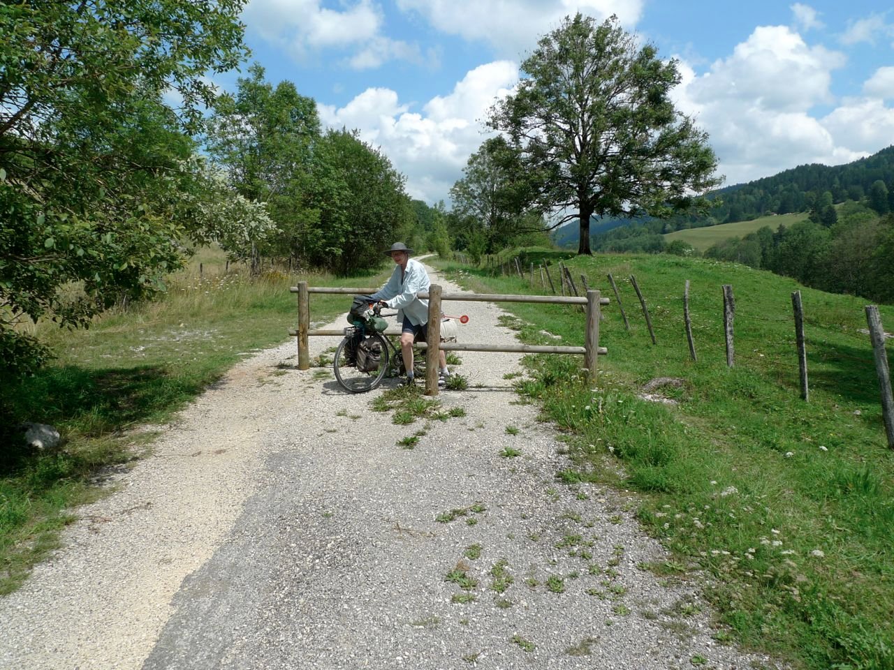 De D 461 vóór Morteau heeft ook zo z'n bedenkelijkheden. Vanaf de Col des Roches tot de rotonde bij Villers-les-Lacs gaat het heerlijk naar beneden, glad asfalt, daar rijd je met een bepakte fiets zo hard dat je als weggebruiker wel serieus genomen wordt. Interessant detail: de trein komt ook over deze col, dwz door een tunnel naast de col, een col die zelf ook uit een klein tunneltje bestaat. De Col is tegelijk de grens tussen Zwitserland en Frankrijk.
