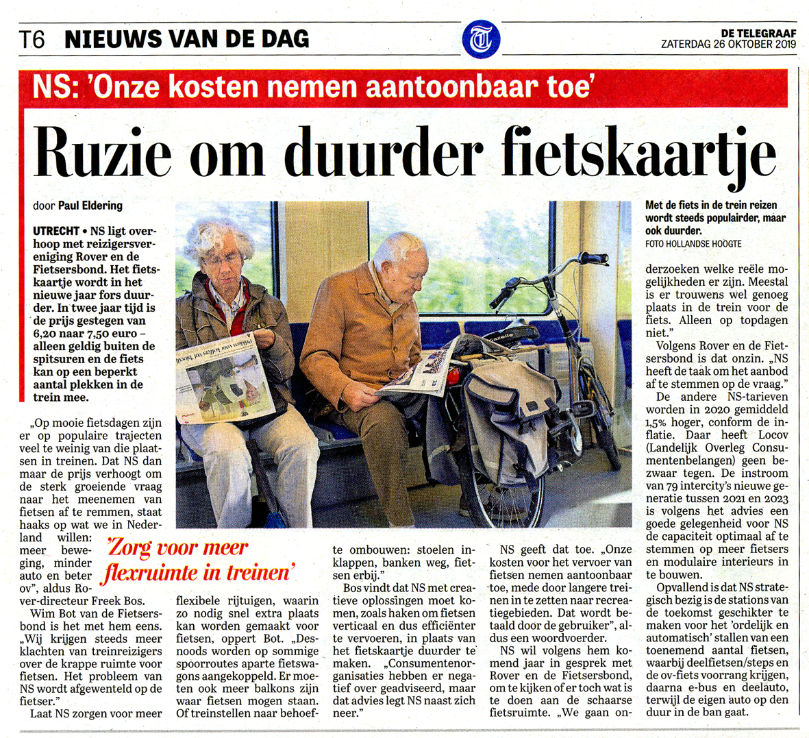 TS schrijft één regel over de prijsverhoging van het fietskaartje.