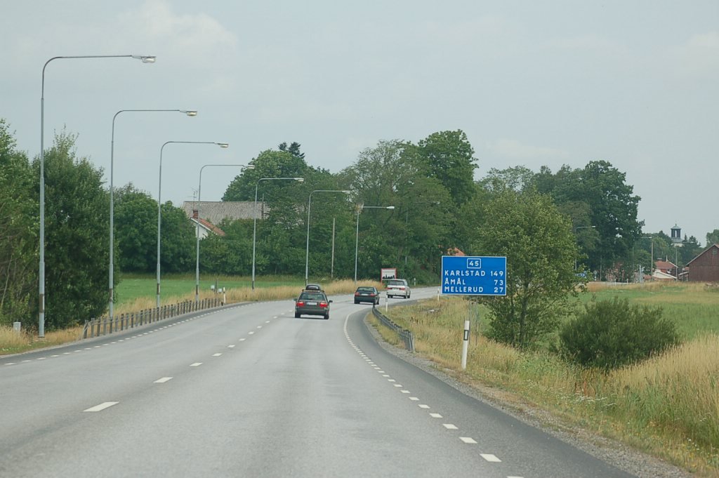 Vanuit Göteborg is de reis wat omslachtig. Al sinds 2003! Eerst over de hangbrug Älvsborgbron naar de E6 richting Uddevalla en Vänersborg. Soms via Trollhättan, maar ook langzaam. Hierna een "provinciale" weg gedurende meer dan 250 km met max. 80 km/u, in bebouwingen 50 km/u waarbuiten ook nog landbouwverkeer en fietsers zijn. Enkel een klein stukje snelweg E18 tussen Grums en Karlstad.