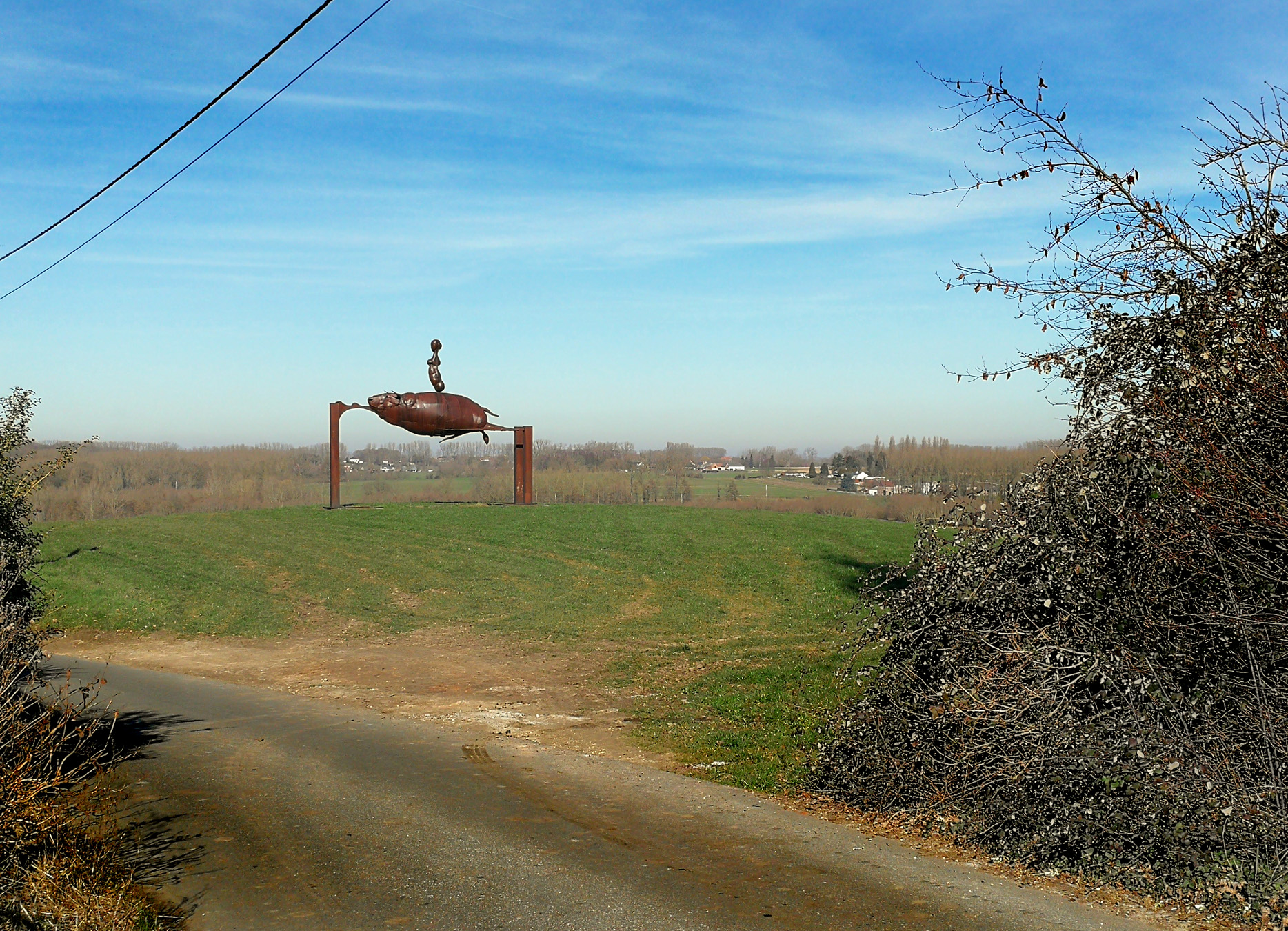Kan net zo goed op een stenen zuil geland zijn of is die meeuw wel een kunstwerk?