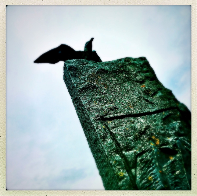 Is het een meeuw? Is het een grafsteen? Is de steen echt groen of is dit een een instagramsetting om het interessant te maken?