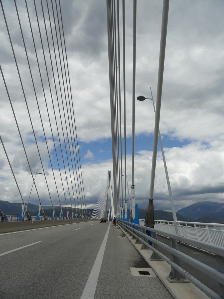 De 2880 meter lange Rio-Antirriobrug geeft toegang tot het schiereiland Pelopennessos vanaf het Griekse vasteland en is, naast de landengte van Korinthe, de enige vaste verbinding naar het schiereiland. De brug is 2800 meter lang en bestaat uit 2 rijbanen, met 2 rijstroken naar het noorden en 2 rijstroken naar het zuiden, een voetpad en vluchtstrook. De brug bestaat uit 5 overspanningen ondersteund door 4 pylonen. De totale lengte van het wegdek dat door de kabels gedragen wordt is 2252 meter en is hiermee de op een na langste tuibrug-overspanning ter wereld, alleen het dek van het Viaduct van Millau is langer (2460 meter).