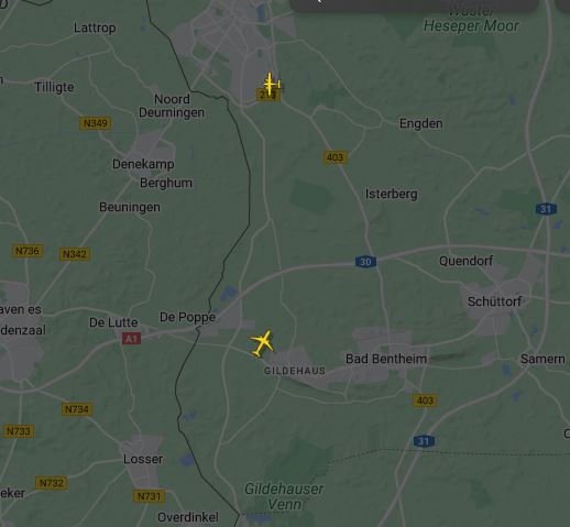 Ik heb meteen de computer aangezet, maar Flightradar gaf alleen maar een vliegtuig van West naar Oost boven Twente en een vliegtuig zuidelijk van Rekken aan dat naar het Noordwesten vloog.