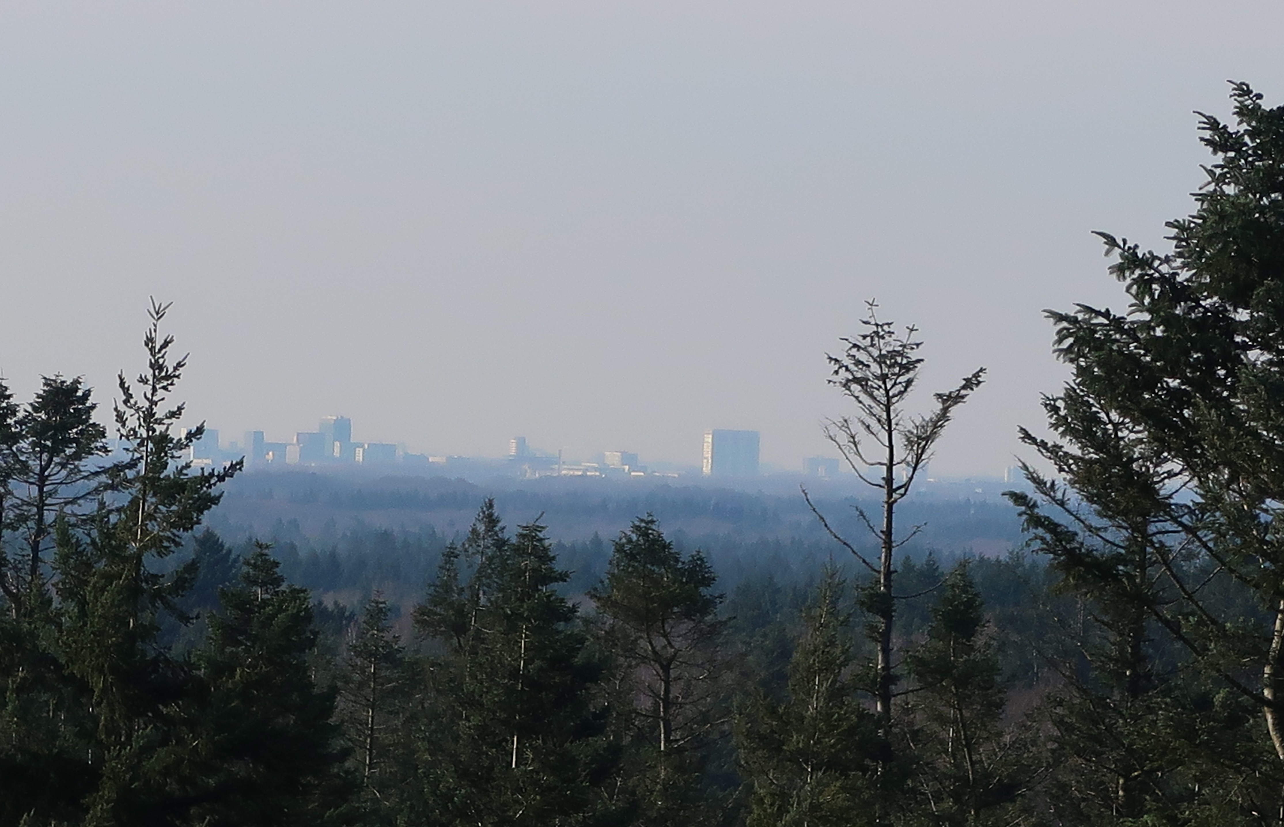 Klopt, van een andere foto heb ik de Dom links laten liggen, de eerste was het uitzicht op Amersfoort, de hoogbouw bevindt zich rond het station en het Eemplein. Een jaar geleden waren de gebouwen van het voormalig ziekenhuis de Lichtenberg bovenop de berg nog prominent zichtbaar maar dat gebouw is inmiddels afgebroken.