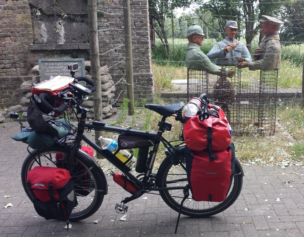 Aan de bovenkant van de onderbuis zit een alleshouder voor een petfles, of een wijnfles voor de avond die we meestal aan het eind van de dag kopen. Alleen bij heel dorstig weer zit er een petfles met water in gedurende de hele dag.
