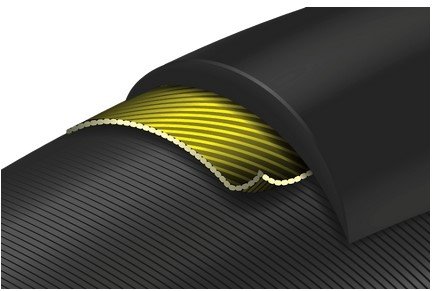 Een glad loopvlak in het midden geeft minder rolweerstand.