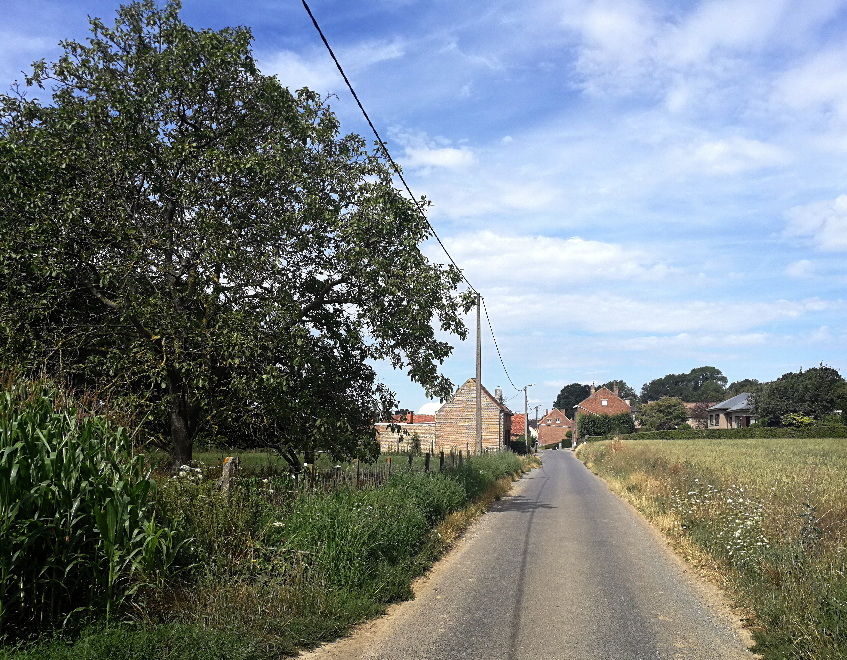 Of anders dat stenen paaltje met vage aanduidingen links van de weg, misschien wel een grenspaal?