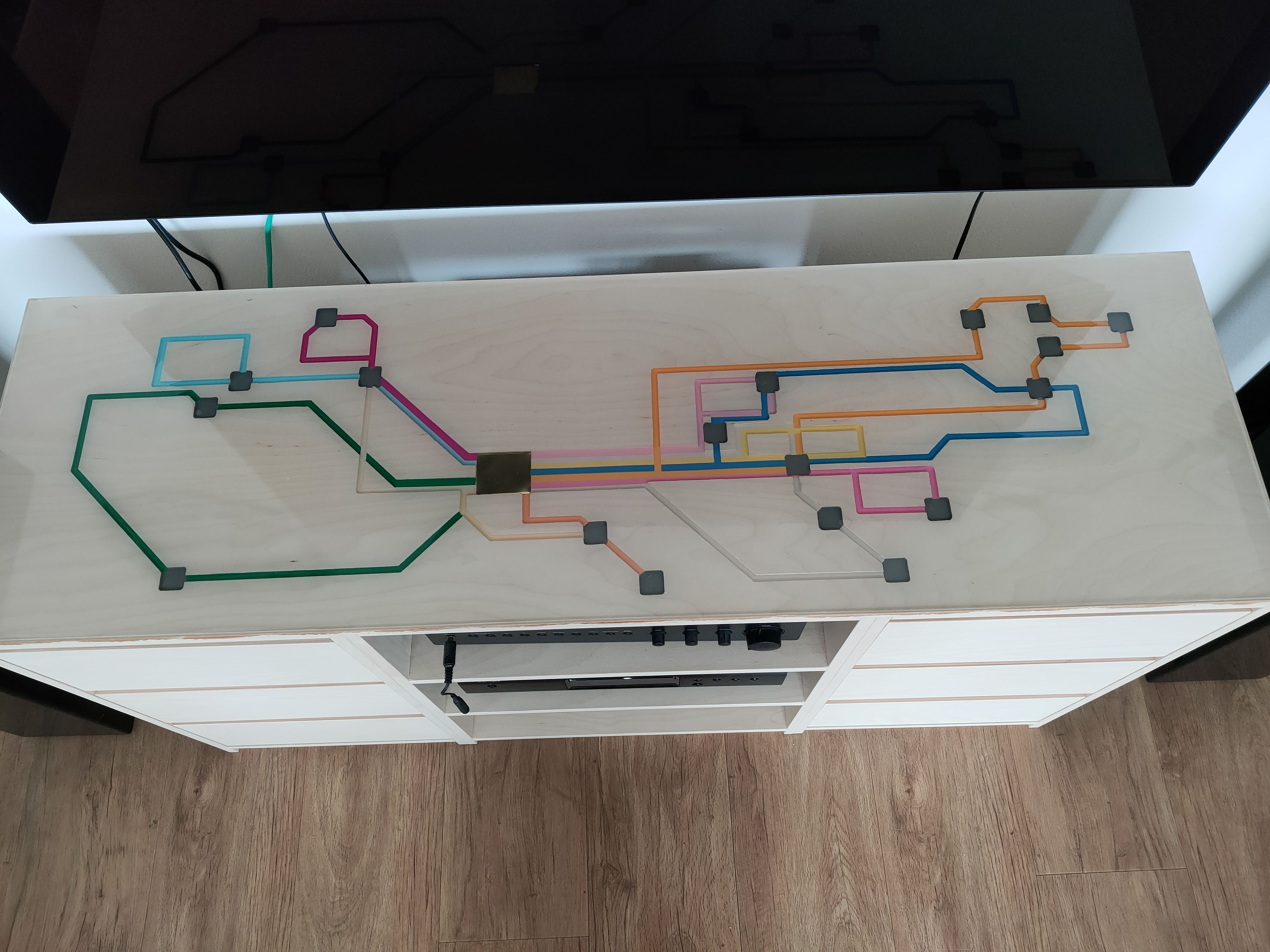 Dat is de metro van London ook, je moet alleen wel even weten wat wat is, daarna kun je prima zonder legenda. Maar inderdaad mooi uitgevoerd door die vriend van jullie. In het echt denk ik mooier dan op de foto, want het goud lijkt bij mij meer zwart.arnob schreef: ↑do 11 jun, 2020 19:17Voor wat betreft de kaart van Europa: 's-Hertogenbosch is goudglanzend messing, gans links is het groene Ierland, gans rechts bovenin in gouden St Petersburg en helemaal onderaan Rome. De kaart is gecomprimeerd op 1 deel hoogte en 3 delen breedte, aangepast aan het formaat van de plank. Voor ons is het allemaal prima herkenbaar![]()