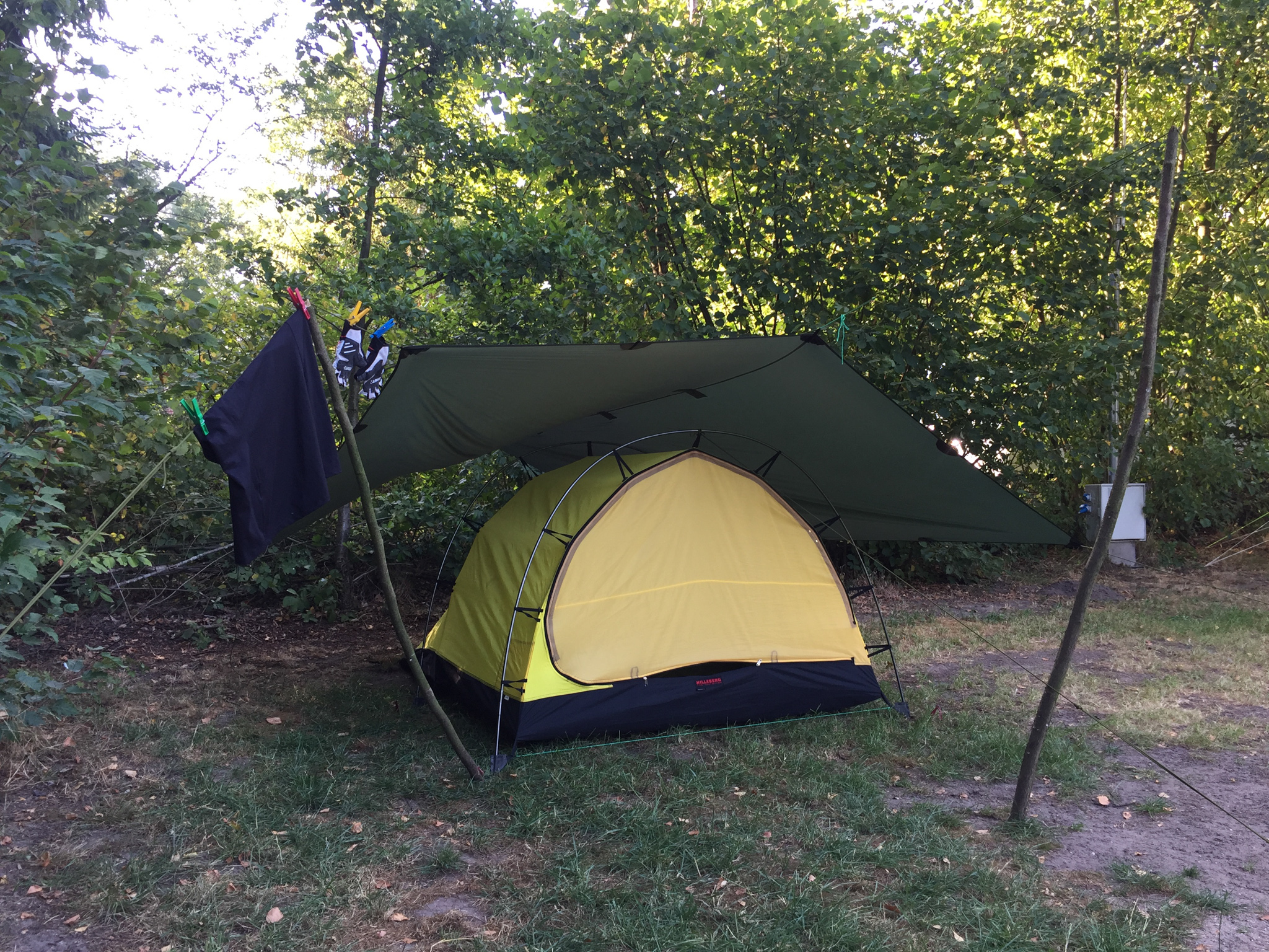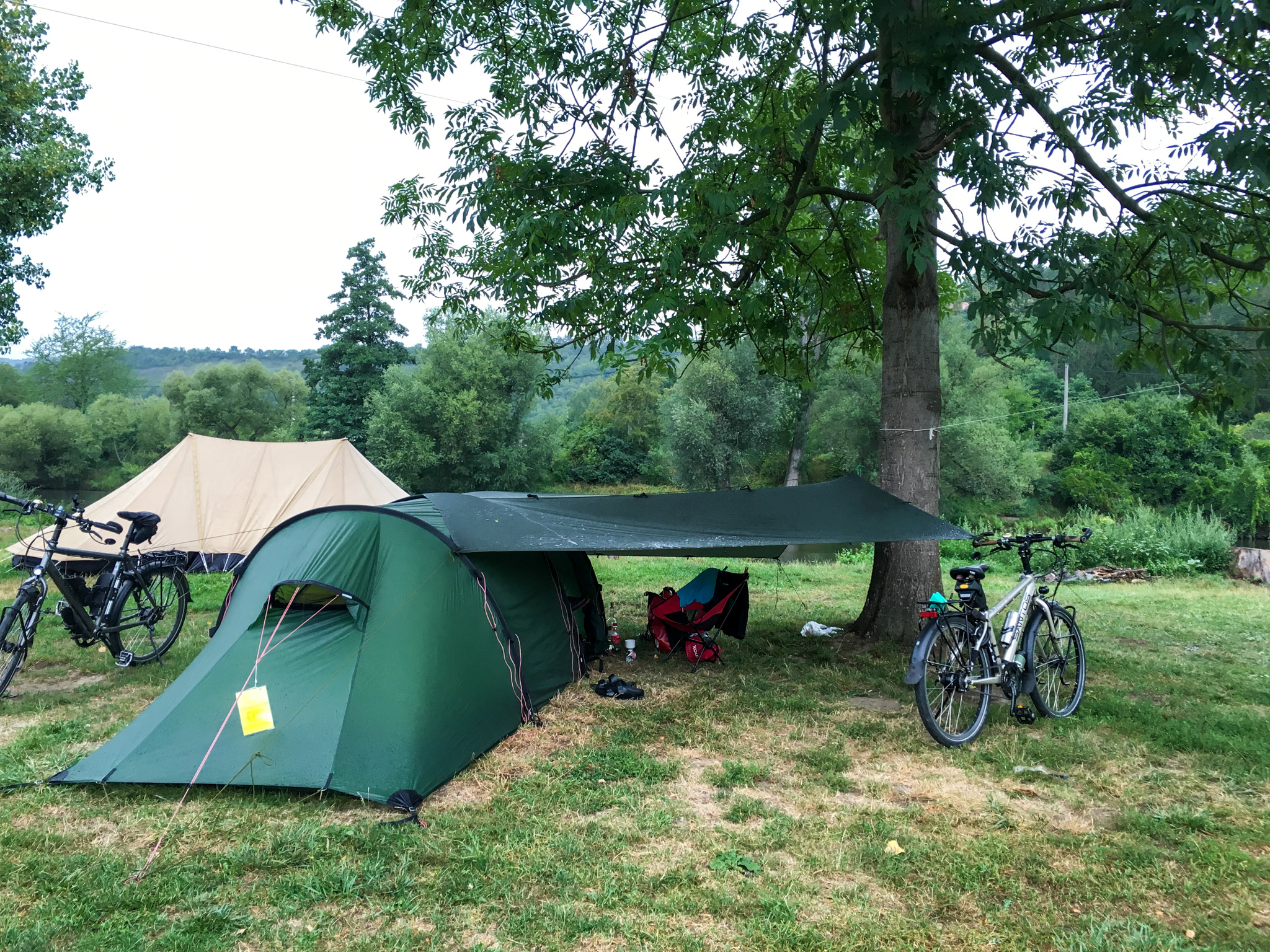 Om helemaal eerlijk te blijven over de geschiedenis van deze tent: In mei 2017 is die nog enkele nachten mee geweest toen we de Pirinexus fietsten.