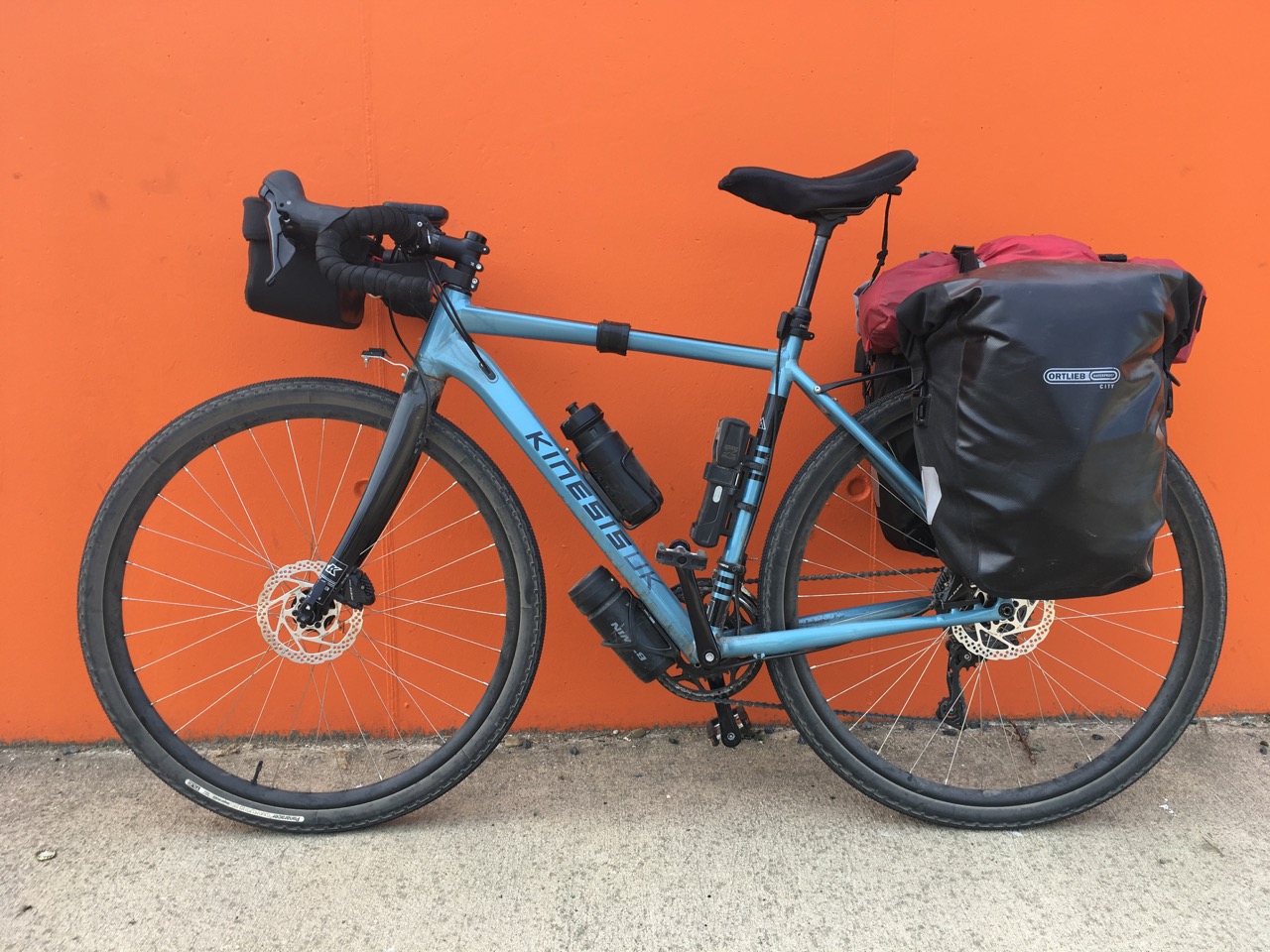 Op deze hete dag (+30º) wou ik simpelweg mijn fiets in orde brengen zodat ik de volgende dag kon vertrekken. Dit omhelsde het monteren van twee clickfix adapters (0211MSA en 0211ST) om mijn stuurtas lager te krijgen zodat ik meer van de weg zie. Bovendien wou ik de 17º 100mm A-head stuurpen vervangen door een rechte 100mm stuurpen omdat a) mijn stuur nu net tegen mijn bovenbuis knalt als het stuur omslaat b) zo'n stuurpen die schuin omhoog staat geen zicht is en c) ik wil weten of ik niet iets dieper kan zitten want dan fiets ik misschien sneller.
