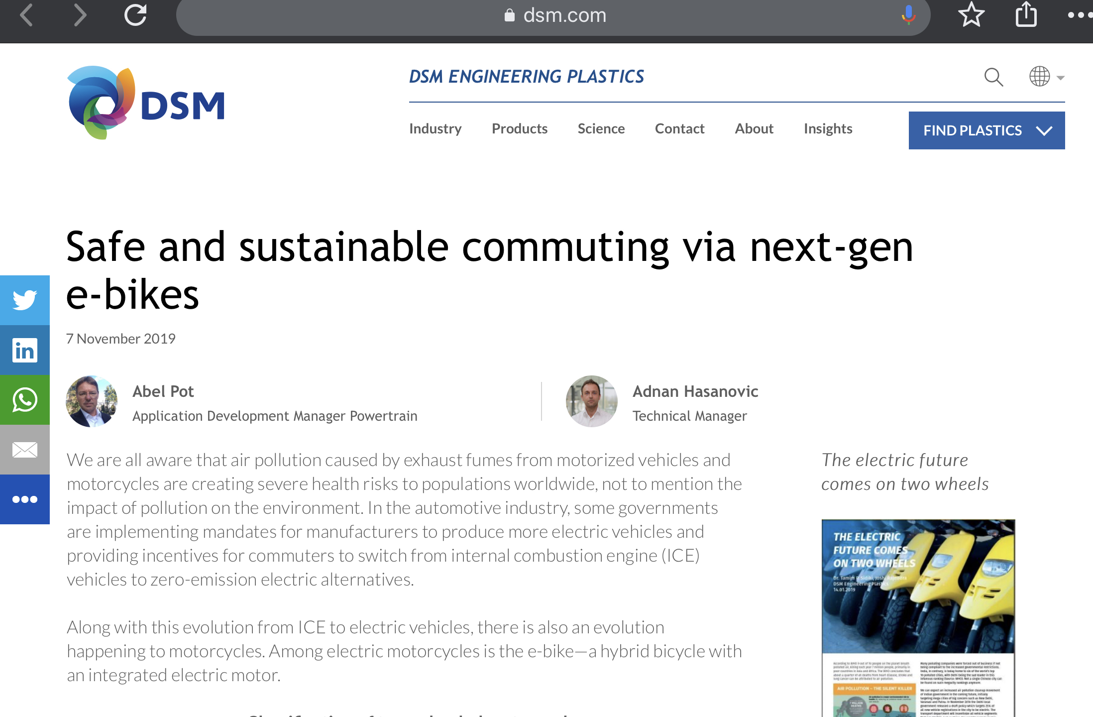 Een betere titel was denk ik geweest "De toepasssing van Xytron(TM) en Stanyl(R) in electrisch aangedreven tweewielige voertuigen".