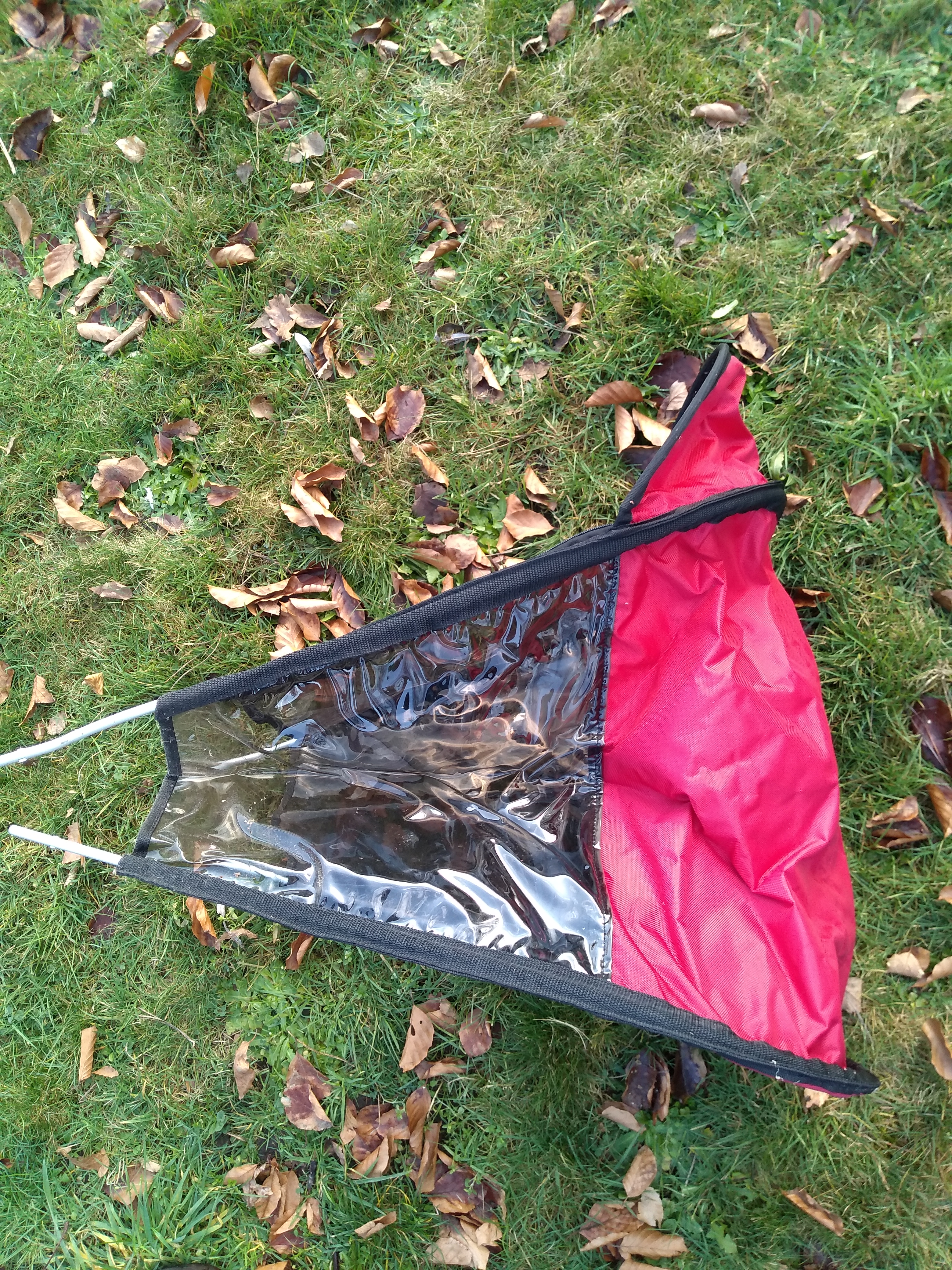 Ook een zonne/regendakje hoort er bij, nooit gebruikt. Inclusief 2 koppelingen om eens aan een andere fiets te hangen en de nodige hulpstukken om de zadelpen/koppeling passend te maken.
