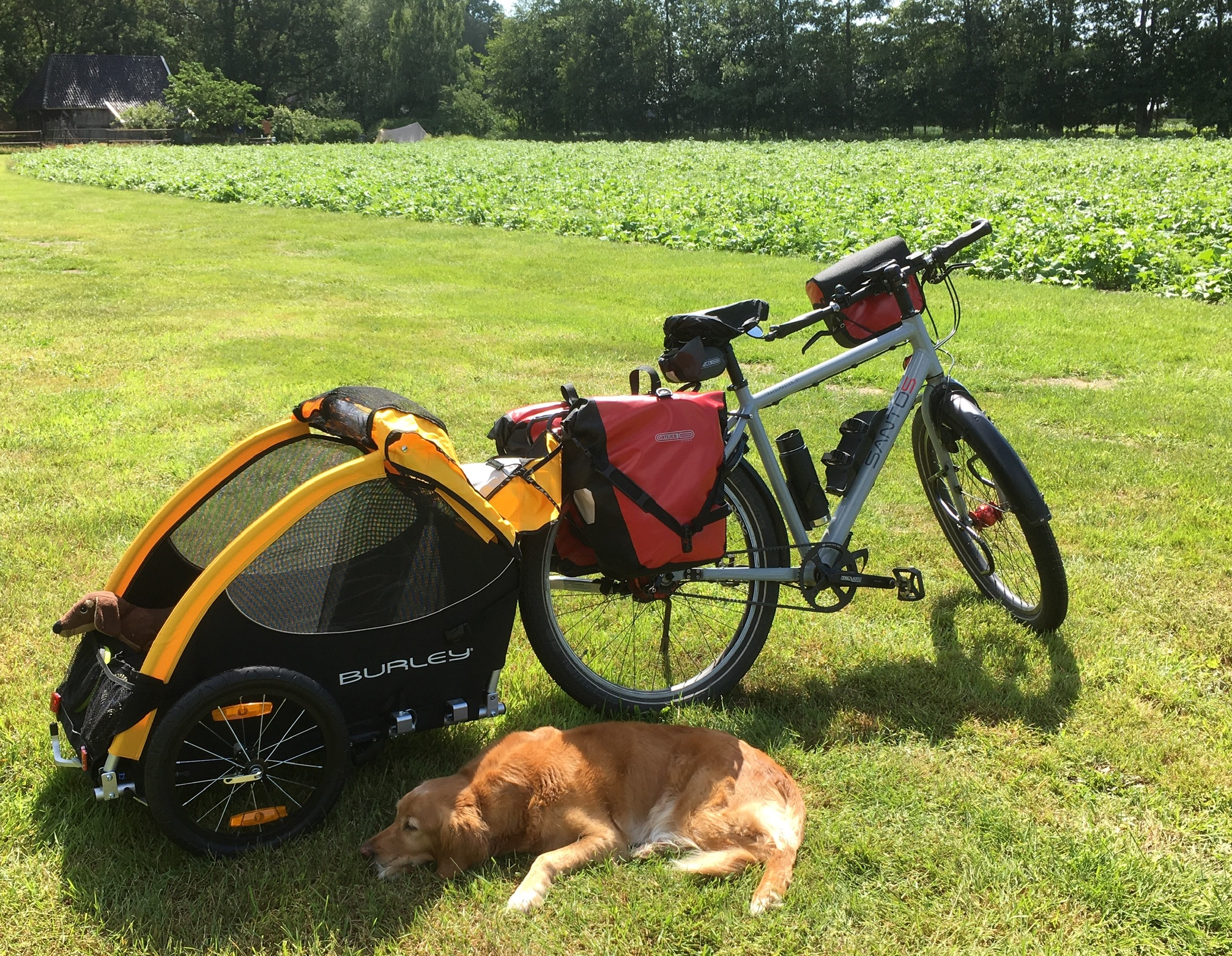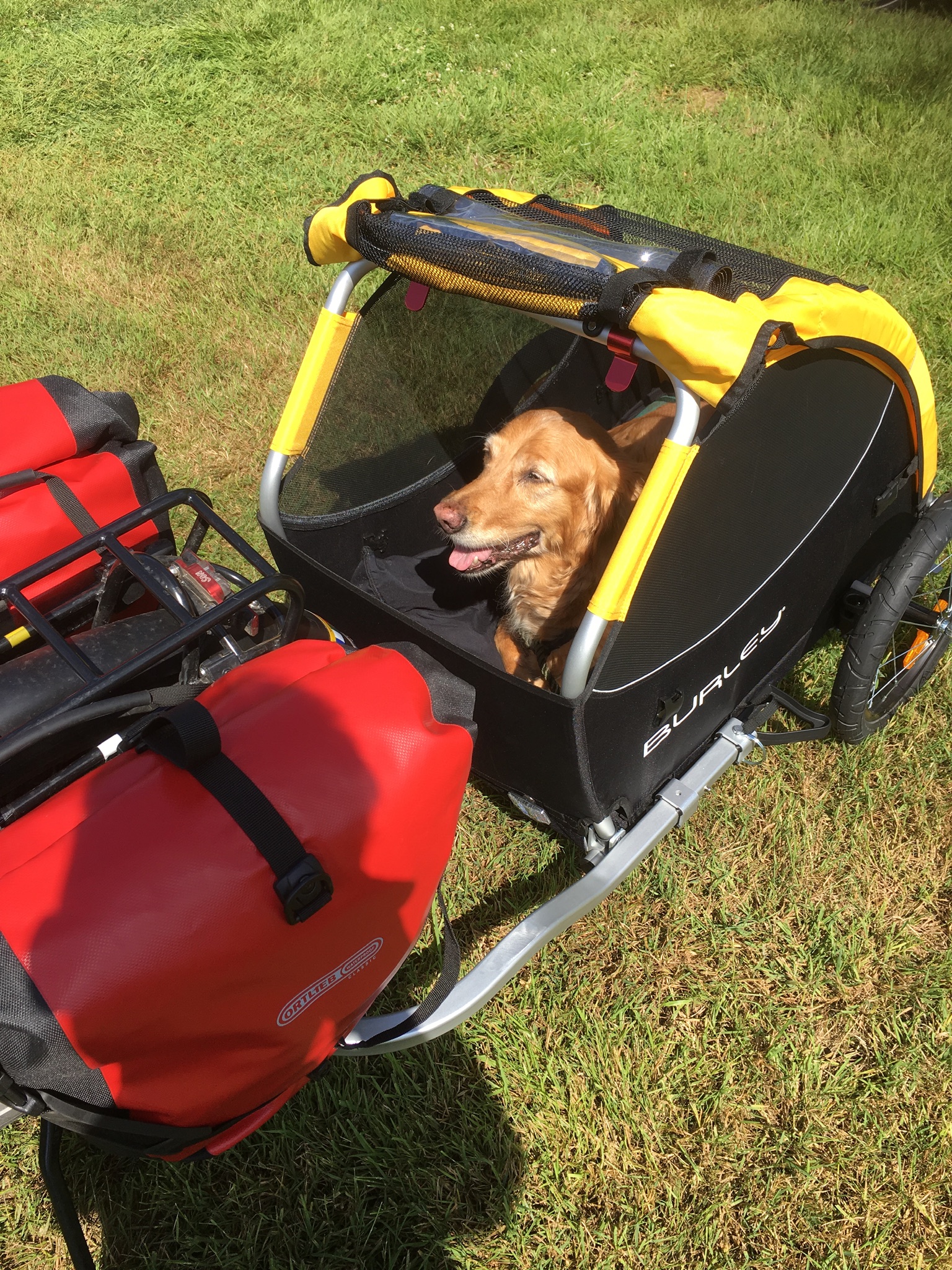 De Burley van Edwin heb ik toen ook naar gekeken, maar mede omdat de Doggyride toen leuk in de aanbieding was (Athleteshop, daarna failliet) daar voor gekozen. Mede ook omdat bij eerder uitproberen van een fietskar bleek dat onze hond het liefst rechtop blijft staan en z'n kop aan de voorkant door het gaas steekt en zo lekker snuift en mee geniet. Pas na enige tijd fietsen gaat zij weleens liggen, daarnaast loopt ze ook vaak naast de fiets mee.