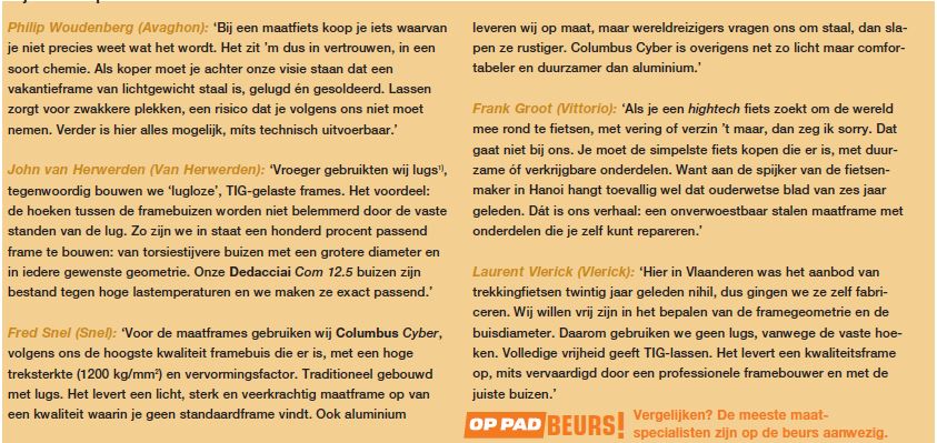 Ik ben aan het rondkijken voor een nieuwe, tweedehands vakantiefiets. Over het algemeen is er informatie genoeg over specifieke modellen te vinden, behalve over van Herwerden. Is een Roadmaster CX met stalen frame sterk genoeg om er vier tassen aan te hangen en er 4 weken mee te gaan kamperen? Ofwel, zijn het echte vakantiefietsen of meer toerfietsen? Ik kijk ook naar Koga Globe Travellers en Radonneurs van onder de 1000 euro. Zijn deze meer geschikt aangezien ze meer voor groot gewicht zijn ontworpen?