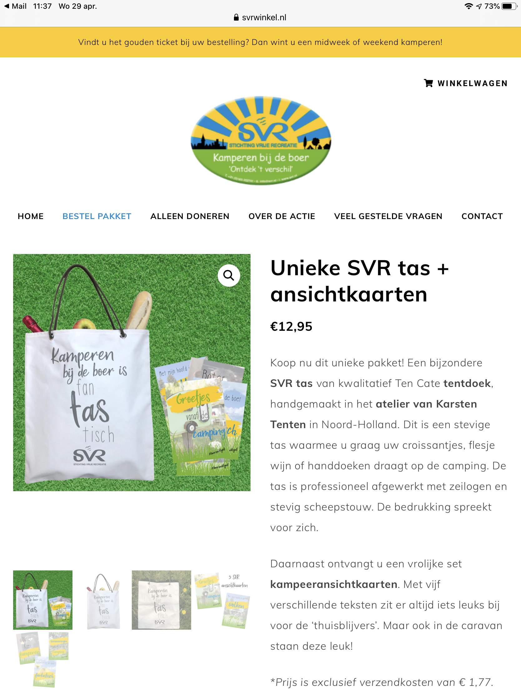 Er is een SVR actie om de boeren campings te steunen nu hun omzet weg is. En zeg nou zelf, wie staat er ook niet op een svr camping als dat zo uitkomt. Het lijkt mij overigens ook een makkelijke lichte tas om bij fietsvakanties te gebruiken.
