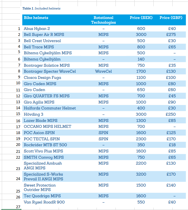 Als je de hoogste bescherming wilt, moet je kiezen voor de Hövding 3, een soort airbag die je om je nek draagt en die zich opblaast bij een dreigende botsing, zie filmpje op https://hovding.com/ . Hij is ook de op-een-na duurste (3000 SEK = £250). Voor deze bijzondere helm is de test wel wat aangepast (zie pagina 6). Ik kan niet beoordelen of dit eerlijk is.