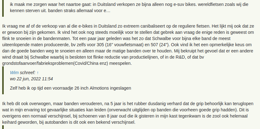 De laatste tijd valt me op dat de margin van de gequote stukken tekst nogal ongelukkig is waardoor je onder de gequote tekst wel een witregel ruimte hebt, maar erboven niet. Dit leest wat ongelukkig. Zelfs als je in het forumbericht zelf een extra enter typt (<br> element wordt dat) vlak boven een quote blijft er ruimte missen. Zie screenshot: Volgens mij kan dit makkelijk opgelost worden in de CSS door het blockquote element ook een margin-top te geven met bijvoorbeeld 20px.