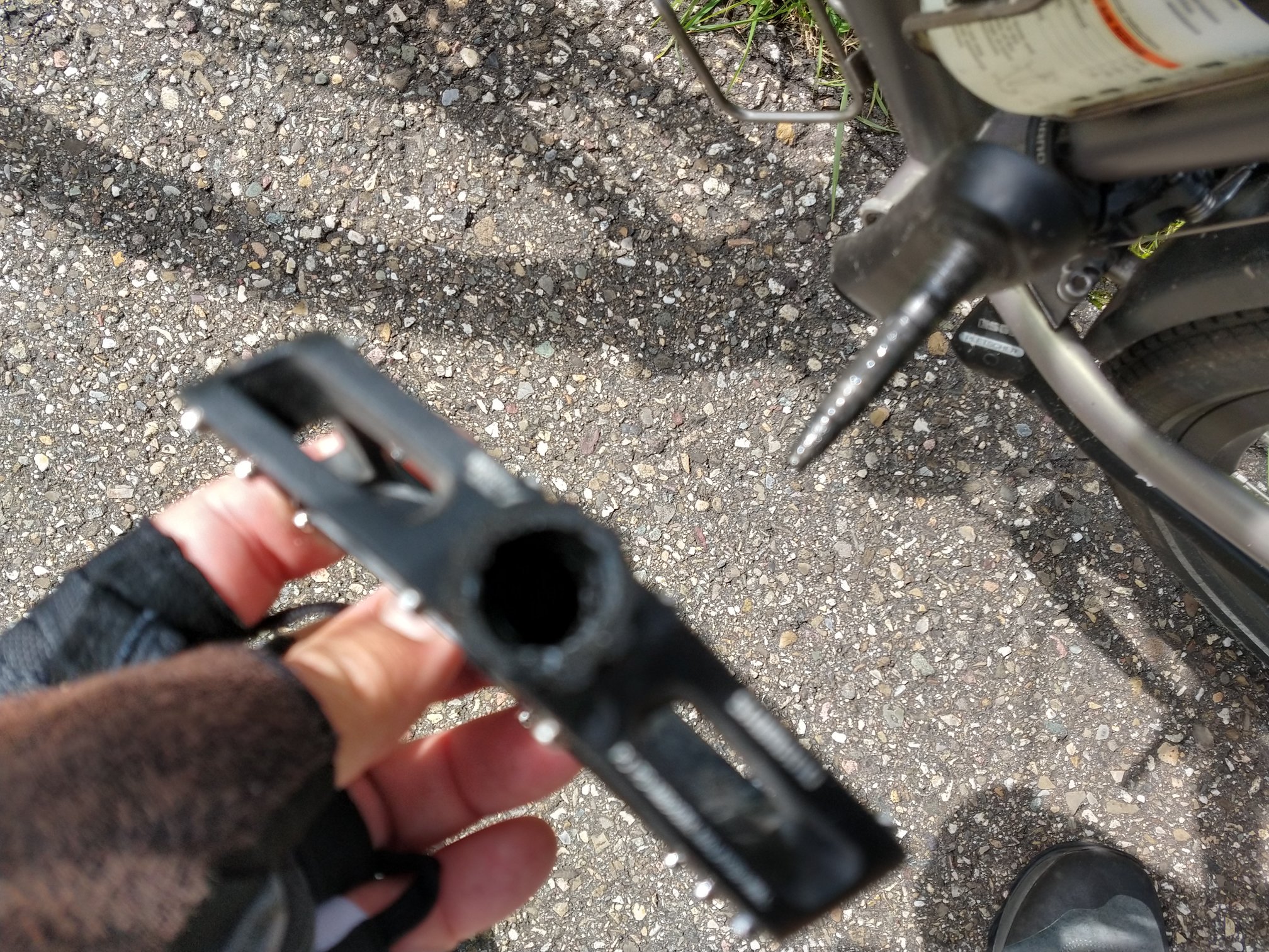 Die linker is van het pedaal dat nog heel was.