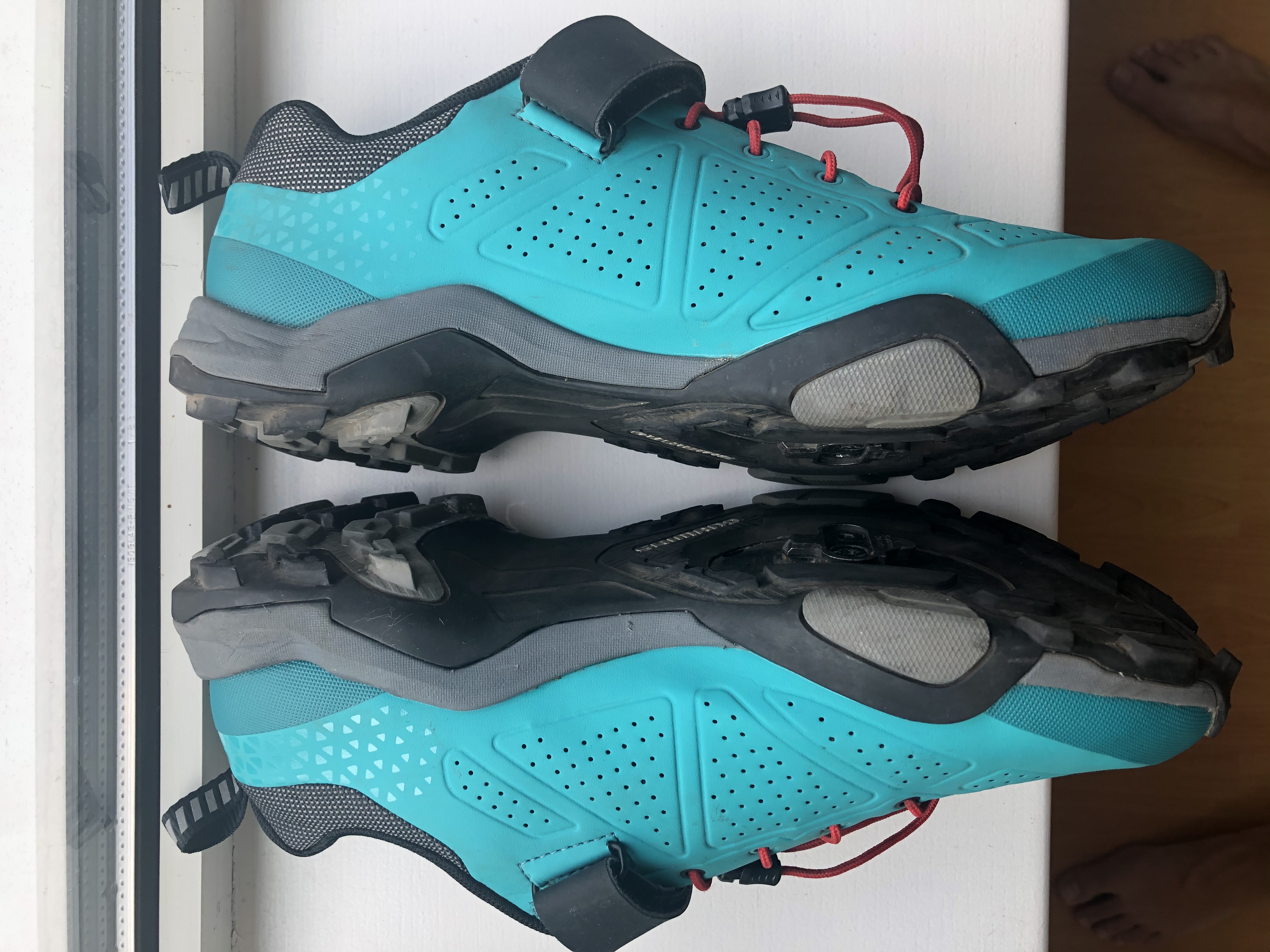 Te koop: loop fiets schoenen van Shimano, maat 41. Verzonken SPD plaatjes. Gekocht voor €85, mogen weg voor €35 plus evt. verzendkosten.