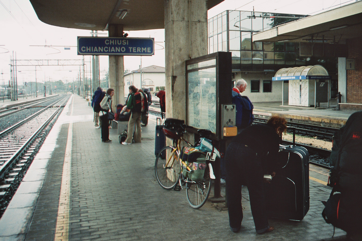 Het is al een tijdje geleden, ik heb een fietstocht door Toscane gemaakt met een kort bezoek aan Rome per trein. Op 2 juni 2006 heb ik mijn gele Giant in een Italiaanse trein meegenomen. Van Siena naar Rome. Enkele reis € 12,34 en voor de fiets € 3,50. Zo spotgoedkoop, aangezien de afstand van Siena naar Roma 254 kilometer was. Wel overstappen in Chiusi Cianciano Terme.
