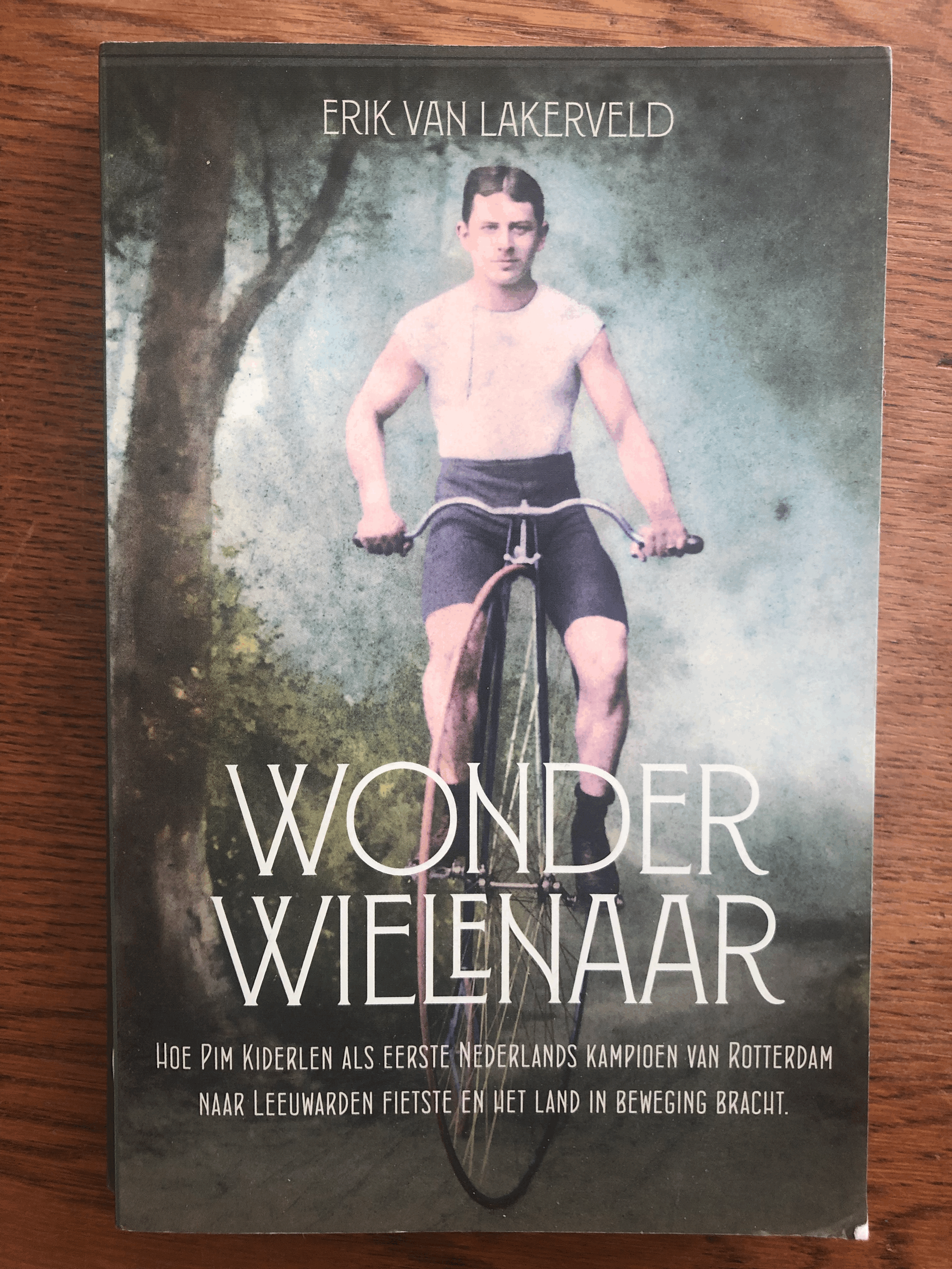 In 1885 reed Pim Kiderlen als eerste binnen 24 uur van Rotterdam naar Leeuwarden. Op z'n fiets, zo'n hoge bi. Erik van Lakerveld heeft er een leuk boekje over geschreven dat lekker wegleest. Ik had 'm dan ook in een weekeinde uitgelezen, in de trein, bij de dokter en nog net niet op de fiets. Nou ja, lekker om te lezen, net niet lekker genoeg om te bewaren. Is er iemand die ik er een plezier mee kan doen voor zeg zeven euro? Ophalen in Heemstede of verzenden (dan komt er nog een paar euro bij).