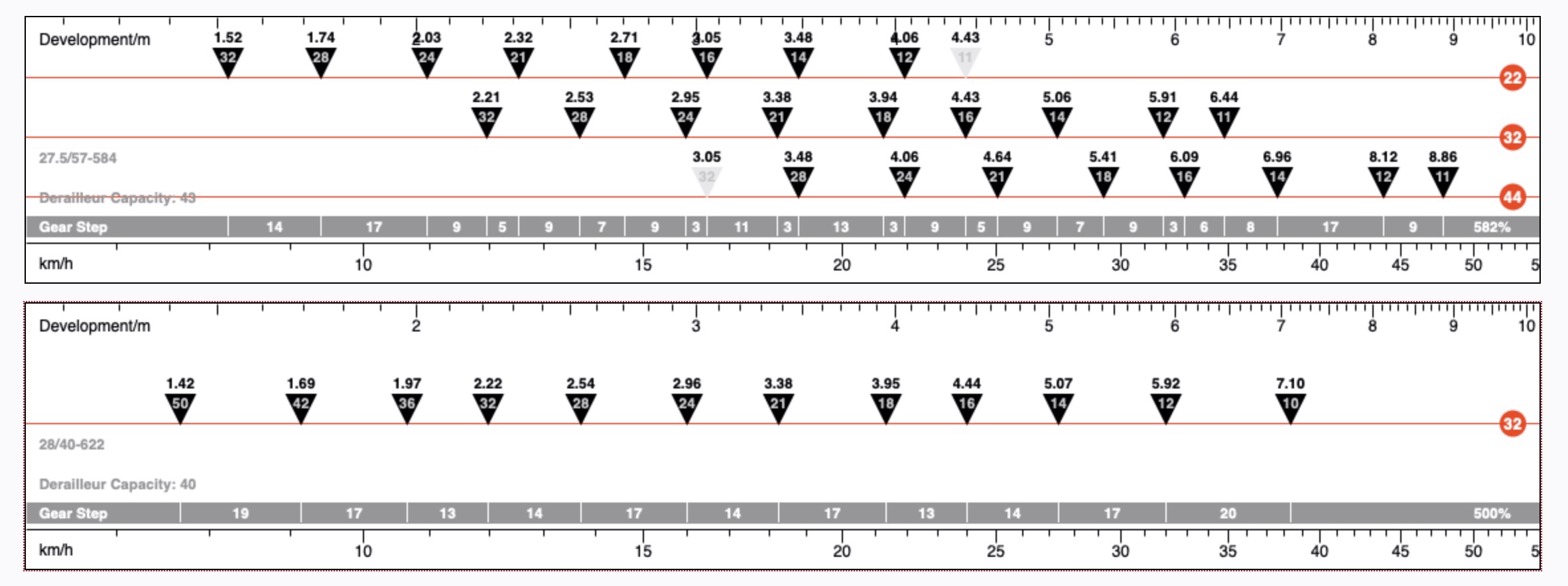 U vraagt, wij draaien: 46-30T met 11-34T cassette (2x11) versus 44-32-22T met 11-32T cassette (3x9)