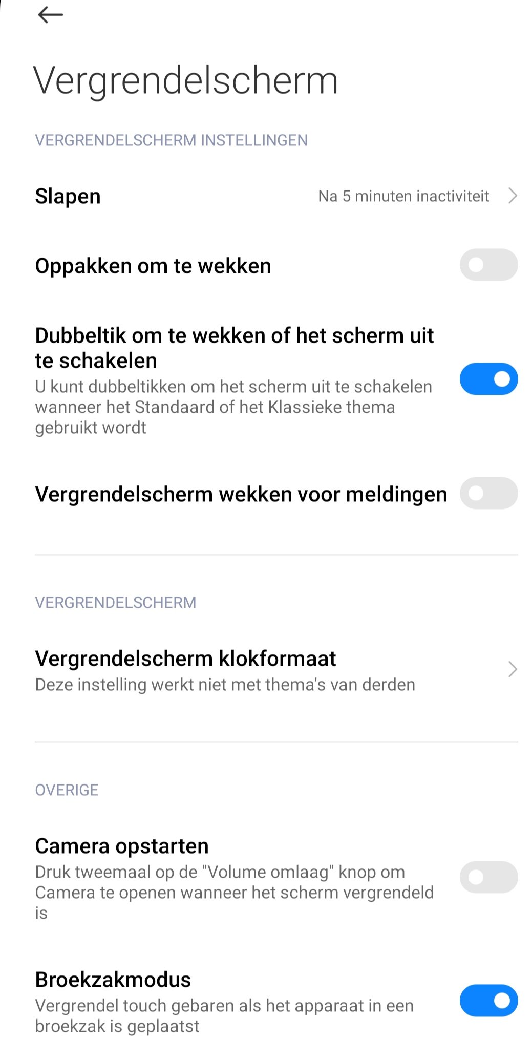 Als ik het scherm uitzet met de aan/uitknop gaat het scherm op zwart en moet ik na tikken op het scherm opnieuw inloggen.
