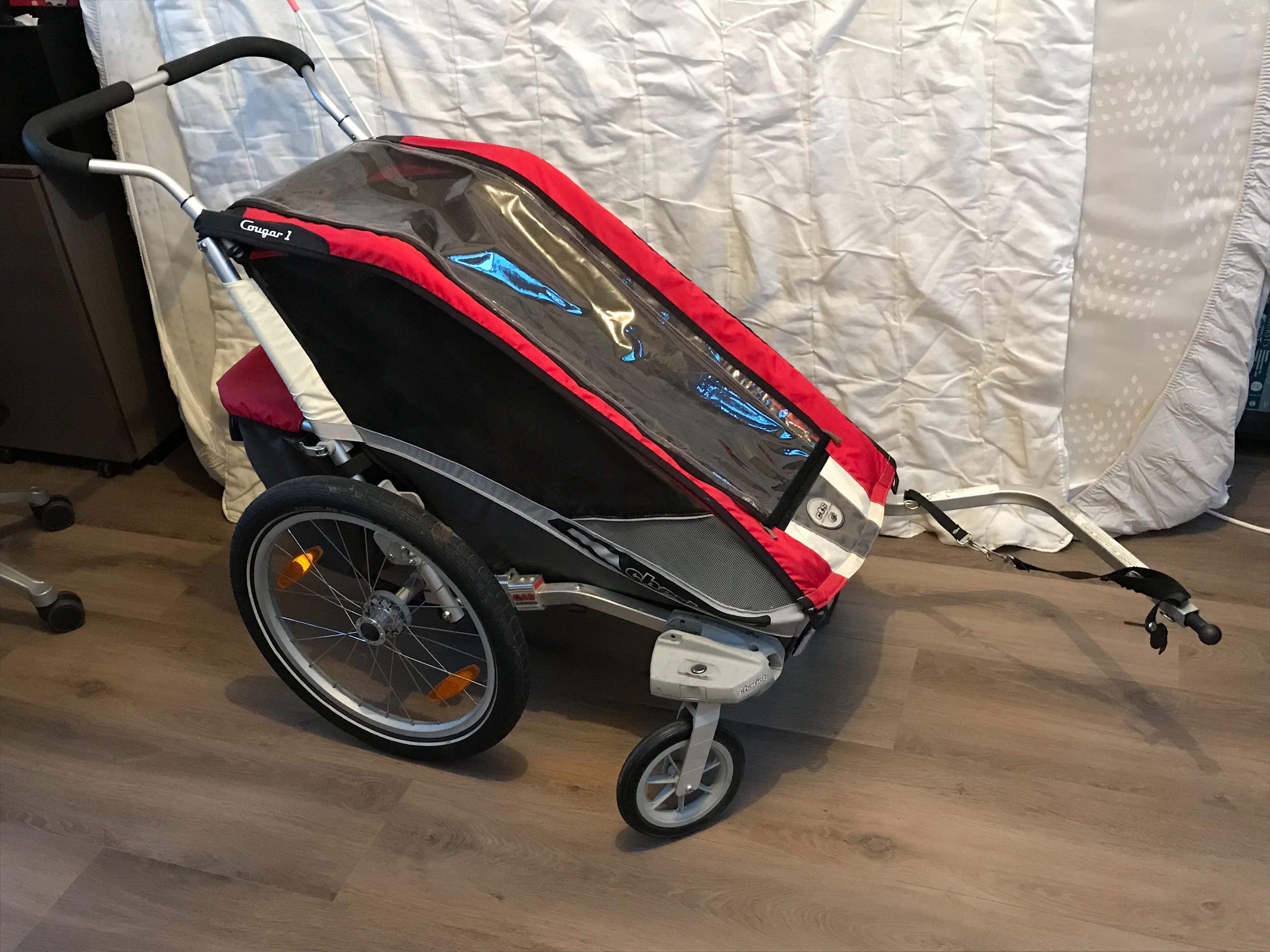 Hij is eenvoudig te veranderen in een handige en wendbare wandelwagen. Hij is waterdicht, voorzien van een op te rollen regendakje en muggenscherm, met gaas aan de zijkant voor goede ventilatie. Je kunt hem goed opvouwen tot een plat pakketje. Door de grote opbergruimte is deze Chariot Cougar 1 ook erg geschikt voor een fietsvakantie met je kind.