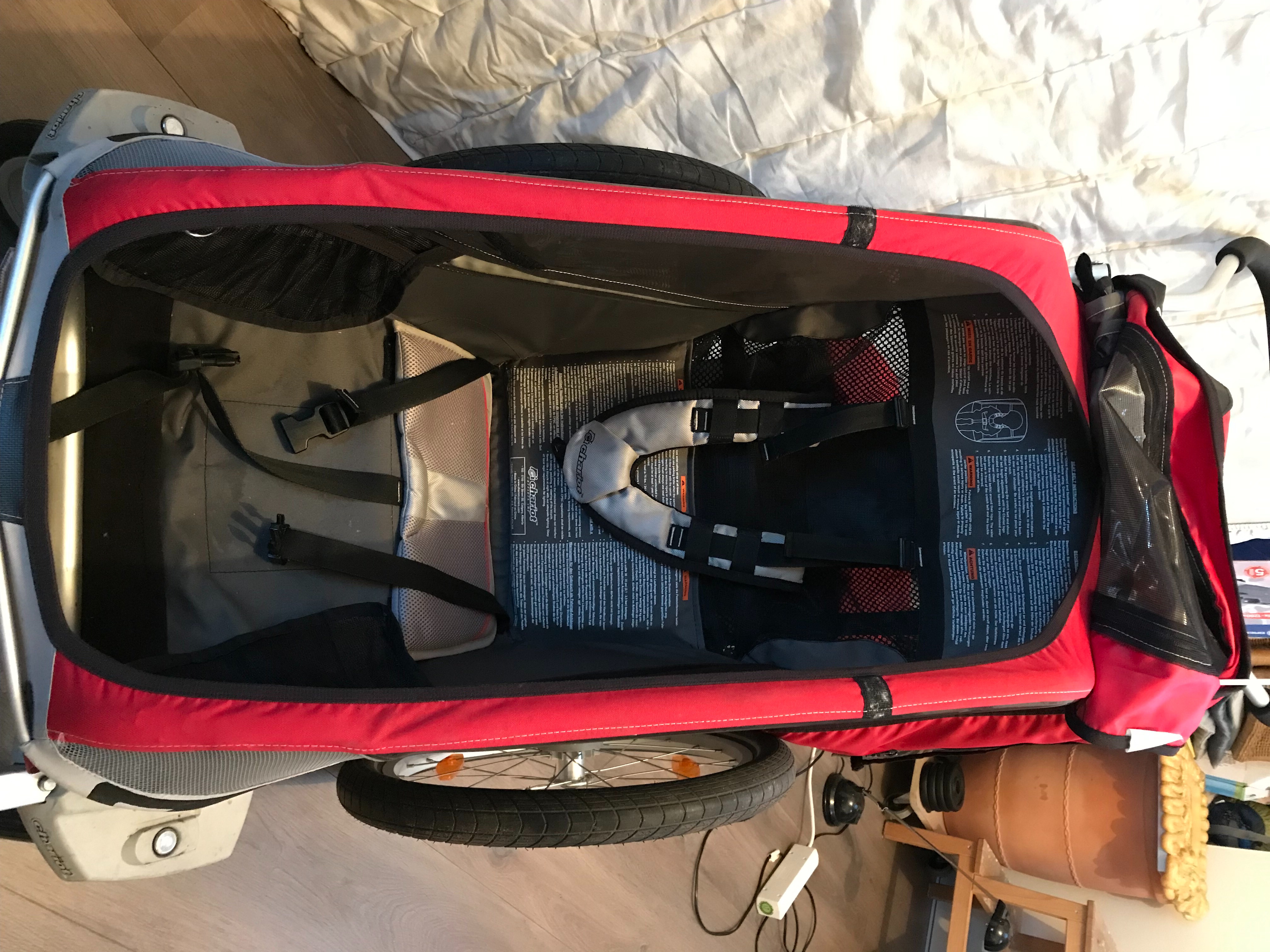 We hebben deze fantastische fietskar enkele jaren geleden nieuw gekocht voor € 1000 incl. accesoires. We hebben hem regelmatig gebruikt maar hij is nog in prima staat.