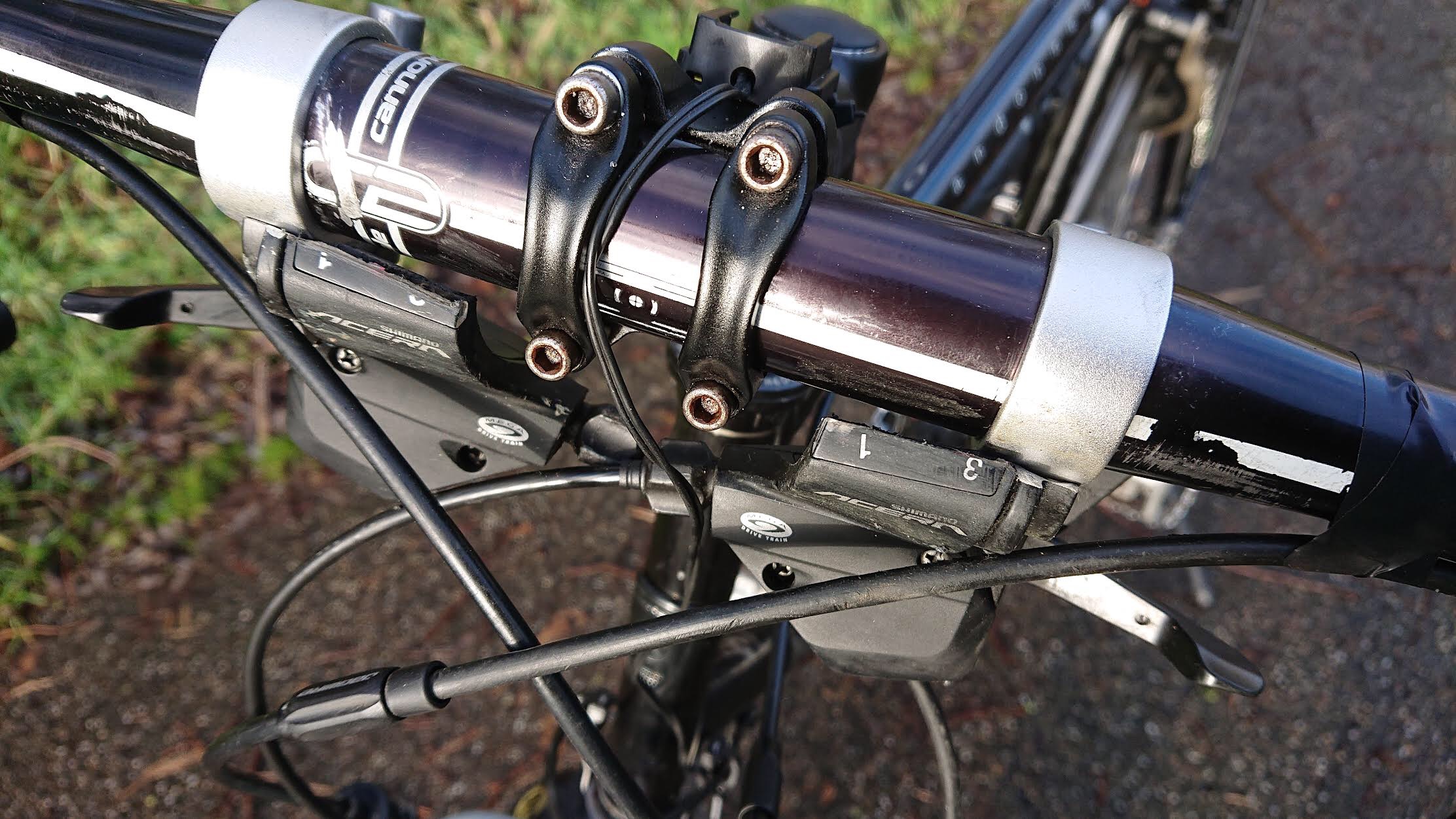 Race rem schakel grepen gaan niet samen met v brakes, waarmee je juist beter remt en bredere banden kunt monteren. Bar end shifters zijn 100 euro en schakelen te ver van de rem voor mij, moeilijk doseren, hand moet los van stuur. En er zitten toch al shifters op?