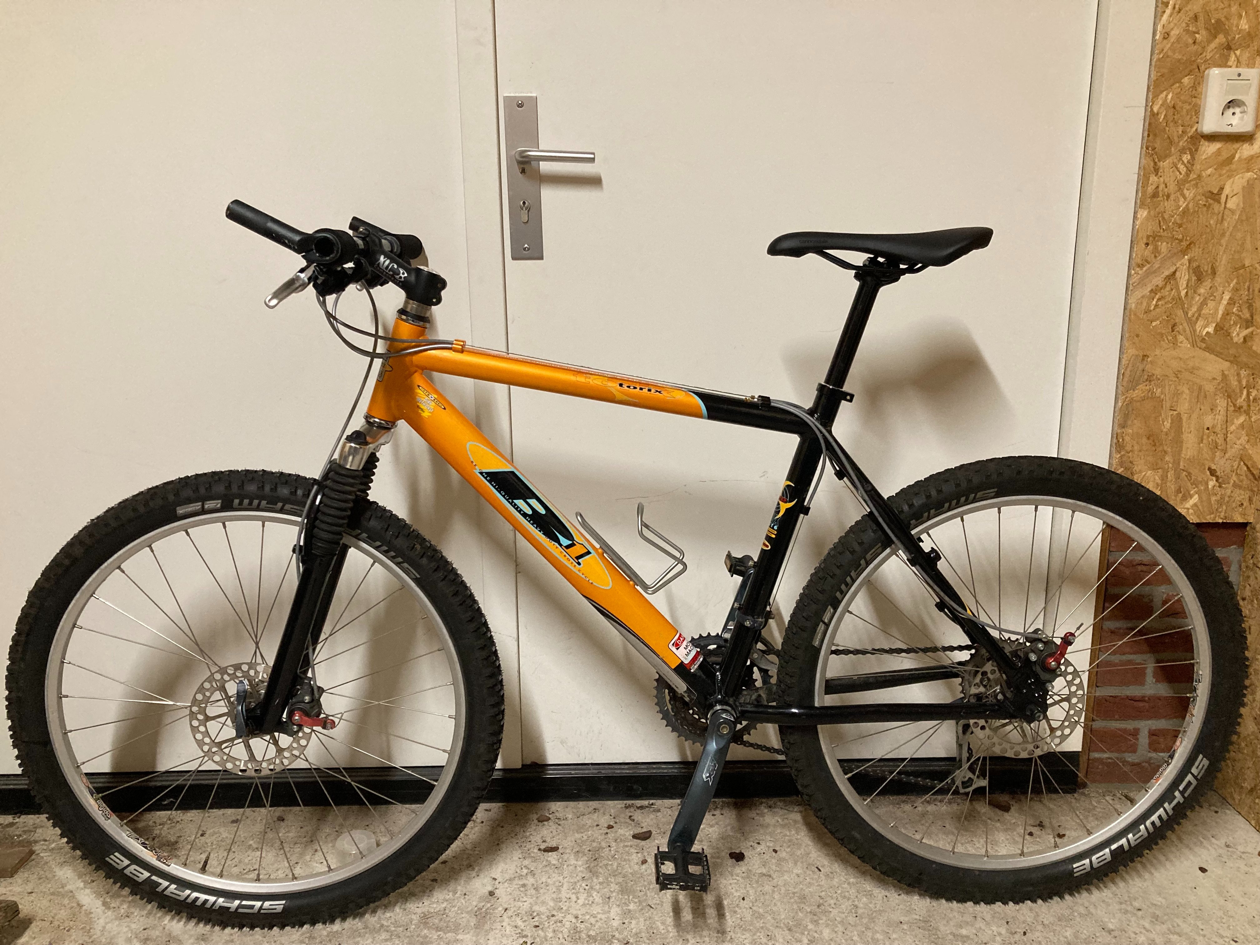Mrs G d'r MTB mag verkocht. Twijfelde nog even tussen strippen voor onderdelen vooral vanwege de vette LX M570 3x9 delen, maar liever kan iemand anders er nog plezier van hebben. Als iemand er voor €100 blij van wordt dan worden wij dat ook :), het is altijd een trouw fietsje geweest.