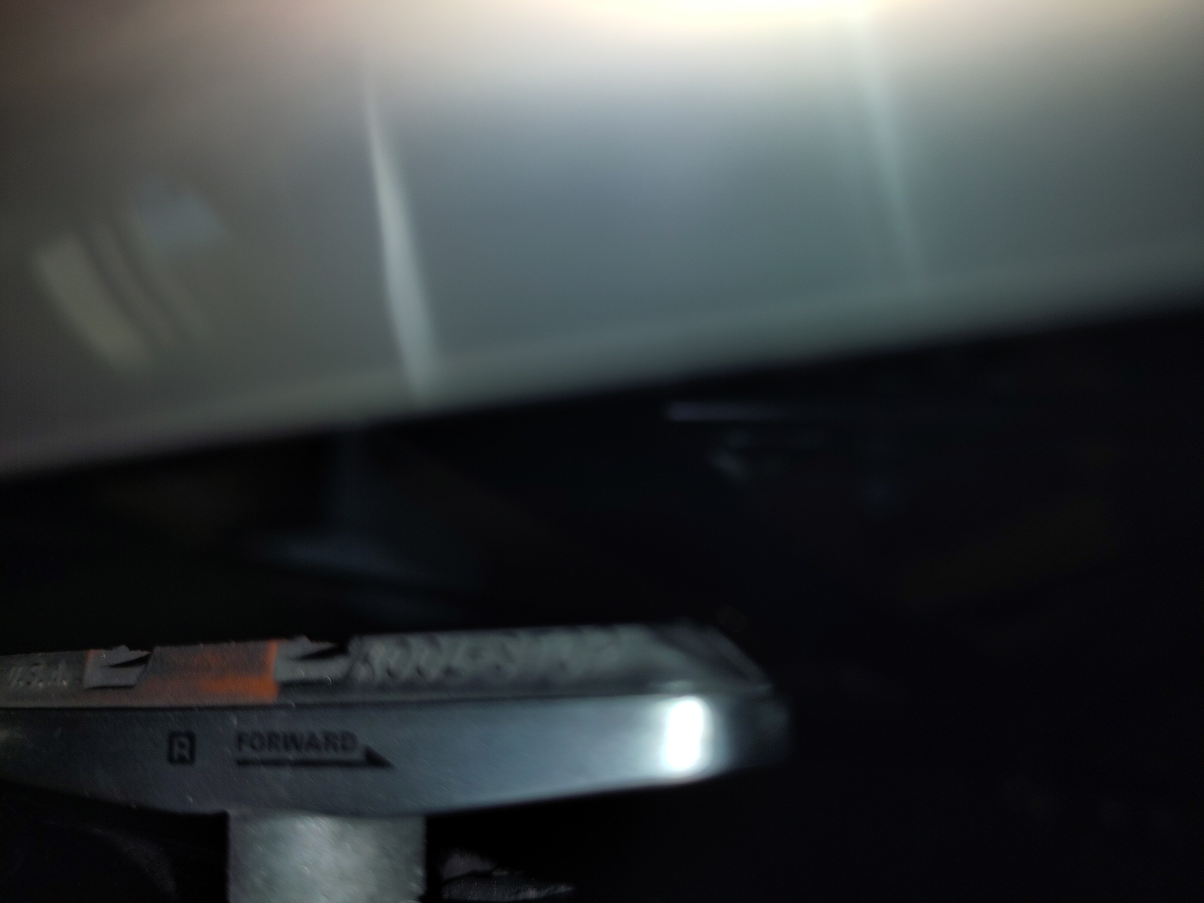 De cartridgeblokjes bekijkend is het bij die dingen wel erg simpel om te zien waar het metaal begint: het is de houder zelf en die kun je gewoon zien. Wetend hoeveel km je met de eerste paar mm hebt gedaan kun je ook een indruk krijgen hoe ver van het einde je bent. Ik denk dat men daarom besloten heeft de wear line achterwege te laten. Ik vermoed dat het gekrijs van metaal op metaal vokdiende is en vrij ongevaarlijk. Helaas weten we van youtubefilmpjes als Idiots In Cars dat sommige mensen echt alle waarschuwingen vergeten.