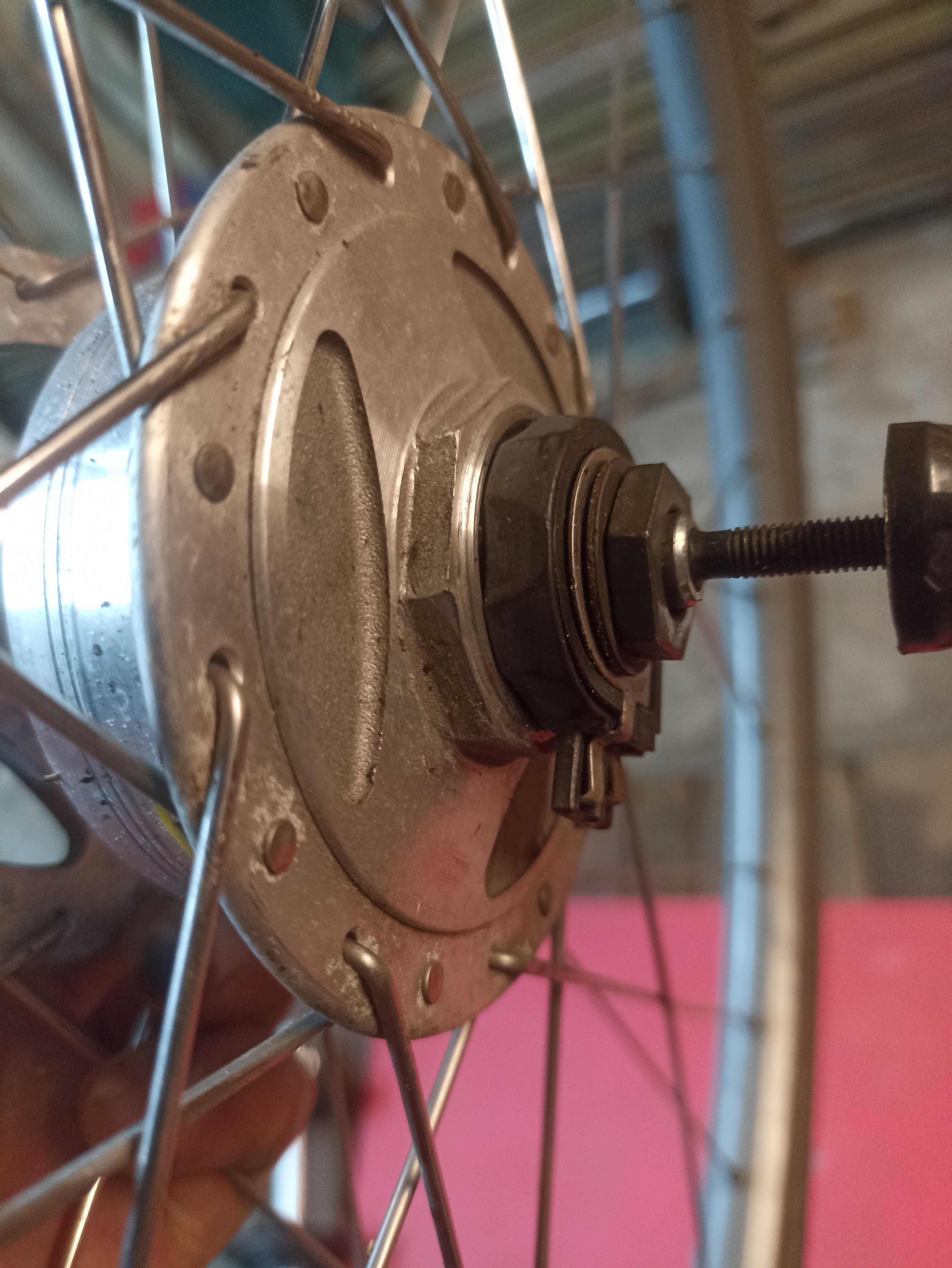 Er zitten niet zoals bij mijn achteras twee moeren aan beide zijdes waarmee ik alles vast zet. Er zit één moertje en als ik die vast draai dan draai ik de as te vast waardoor deze niet soepel loopt. Houd ik het moertje iets losser zodat de as wel soepel loopt dan komt er te veel ruimte en gaat die elektra geleider waar het stekkertje op moet draaien. En ik heb die natuurlijk wel in dat puntje gezet wat er onder zit. Doe ik iets fout?