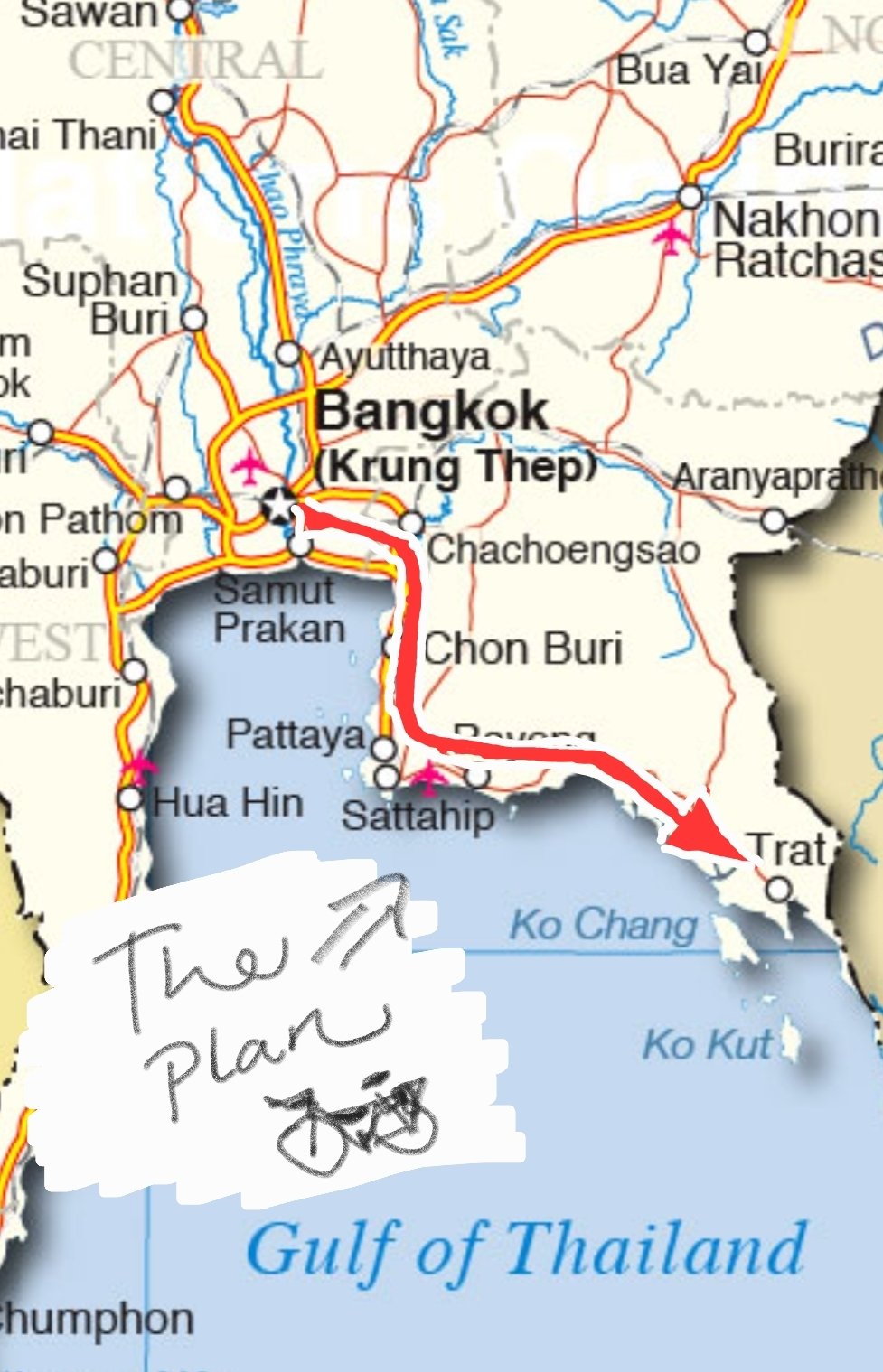 Een tweede beslissing die ik moest nemen was de richting waarin ik zou fietsen. Dat ik eens vanuit Bangkok zelf wou vertrekken stond al vast. De zuidwestrichting naar Phuket had ik vorig jaar reeds gedaan (en ook in 2008). Het noorden misschien? Het is wel erg ver naar Chiang Mai als je maar twee weken hebt. Naar het zuidoosten richting Cambodiaanse grens? Dat leek wel interessant. Je kan de kustlijn volgen waar altijd wel makkelijk hotels te vinden zijn – wat niet onbelangrijk is als je absoluut niks op voorhand boekt. Ja, dat werd het, vanuit Bangkok richting Cambodja fietsen met als centrale idee: we zien wel waar we geraken.