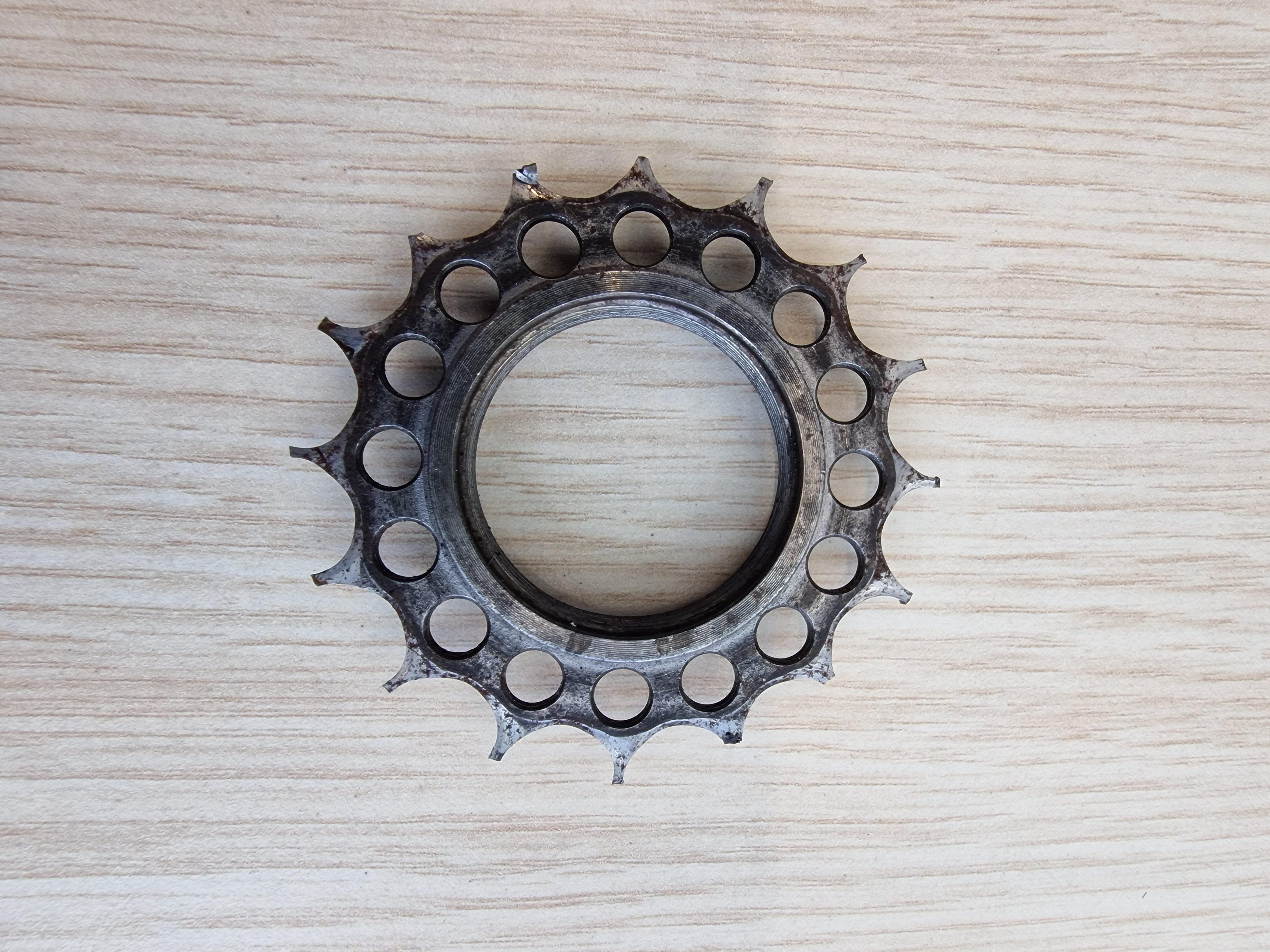 Dit is het kleinste en weinig gebruikte kransje met 11 tandjes. Ondanks dat ik er nooit kracht op zette is al een klein braampje zichtbaar: