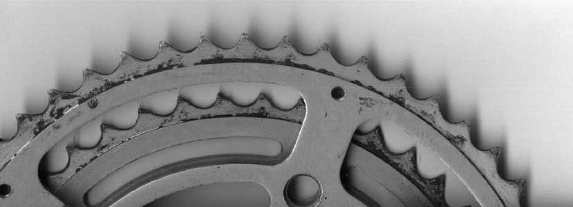 Als je ketting al versleten is krijg je de voorbladen op een derailleurfiets heel rap zo versleten.