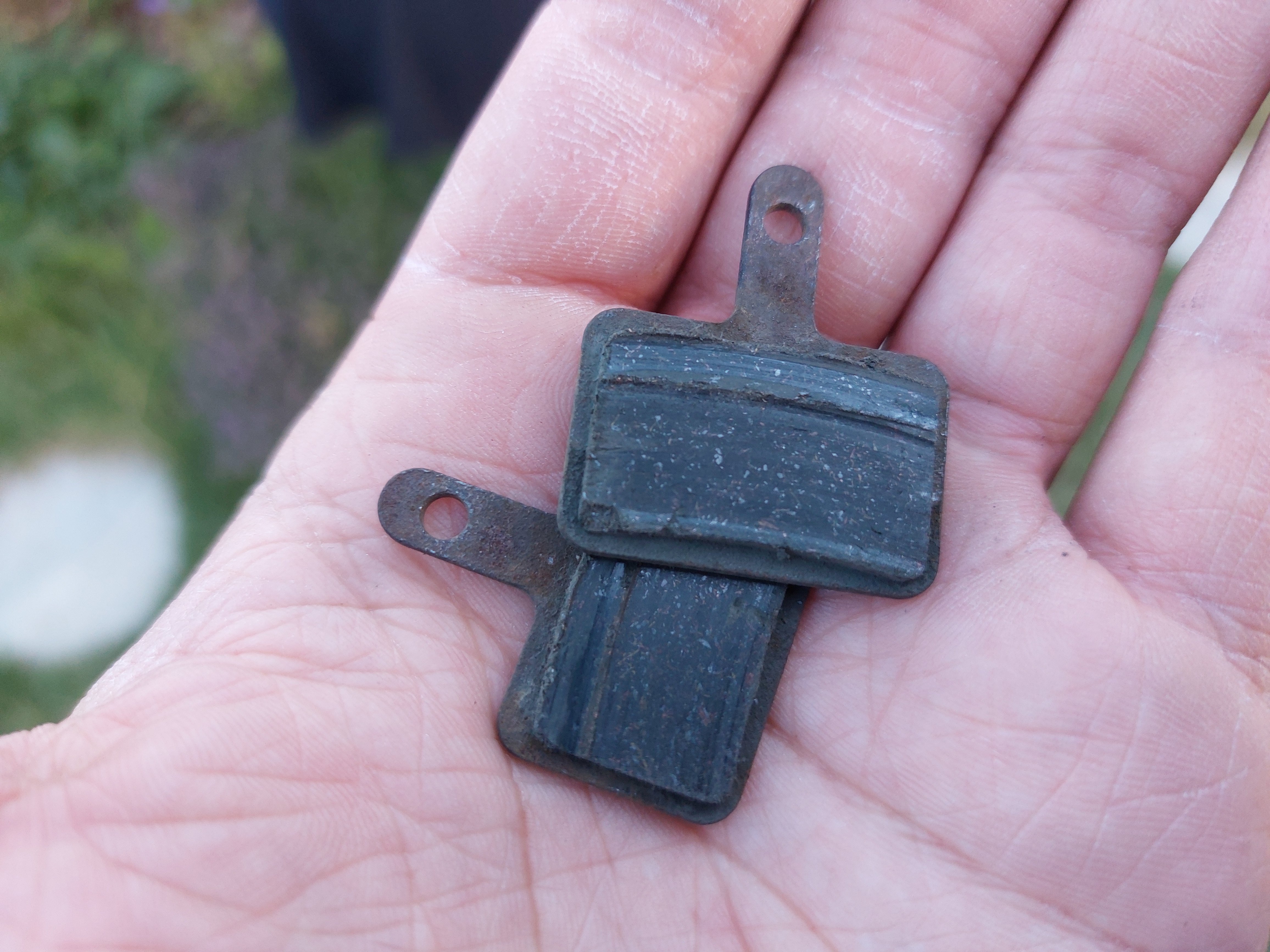 Omdat mijn vriendin echt met de fiets weg moest vandaag heb de versleten remblokken er maat weer even in gestoken. Op een dag tijd is er van het dikker stuk al een pak meer afgesleten dan hoe ik ze eerst aan trof. Dus het dikker stuk van de blokjes was dus nog dikker eigenlijk.
