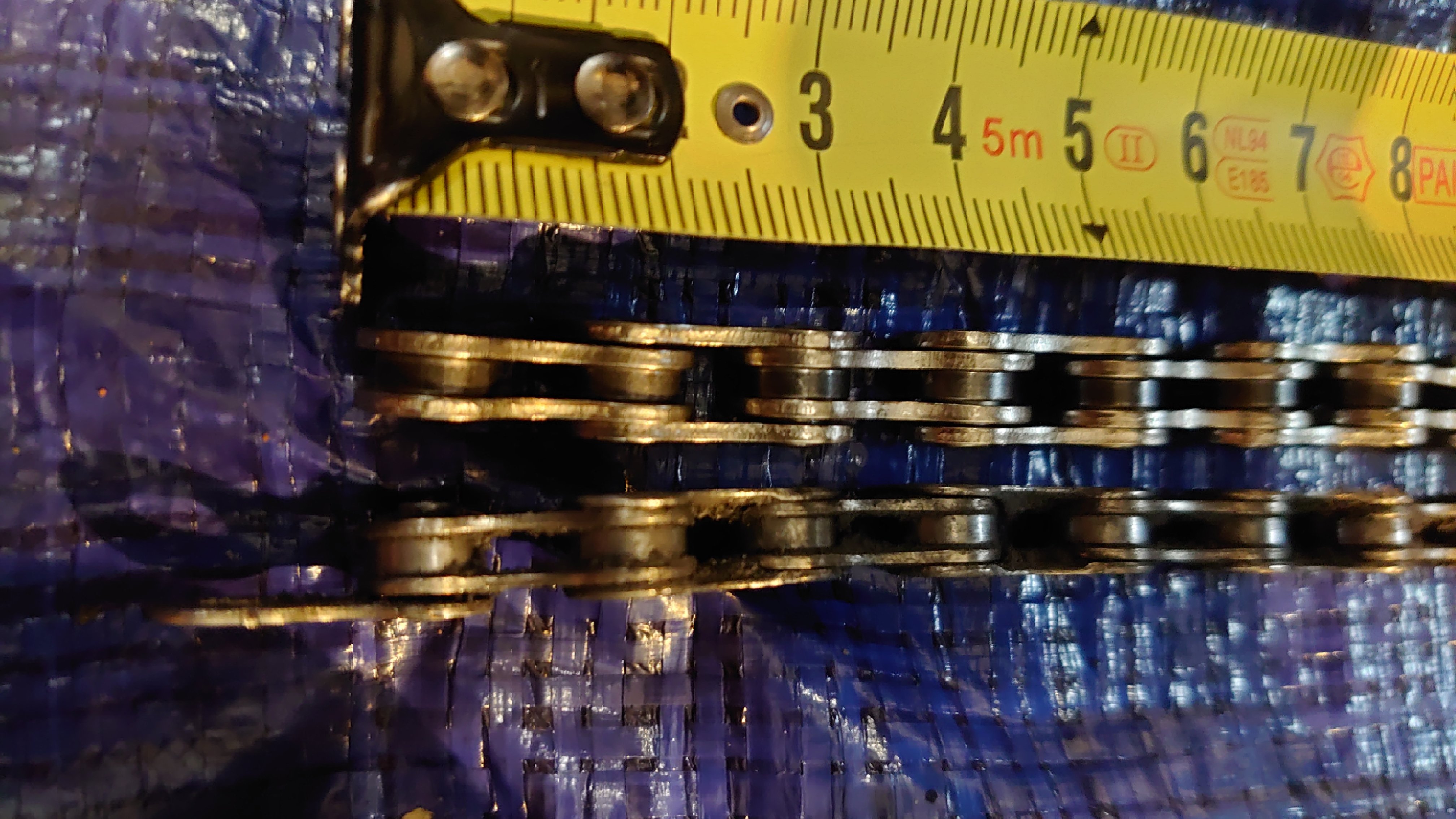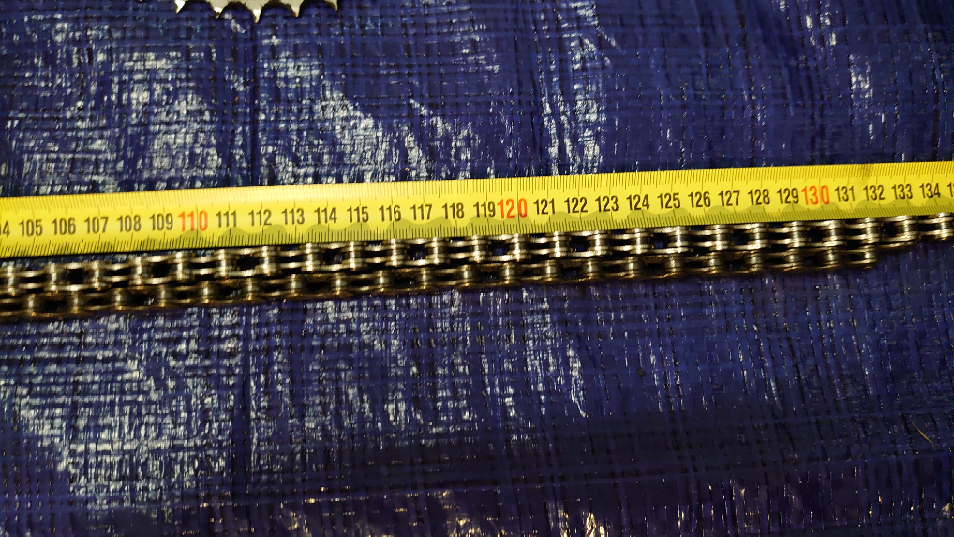 De nieuwe ketting heeft voor dezelfde lengte 104 schakels nodig tegenover de oude 102. 2% lengte toename in 15k