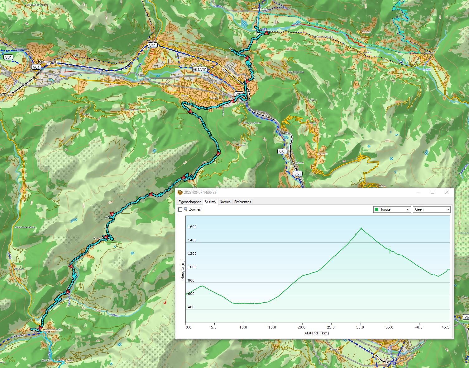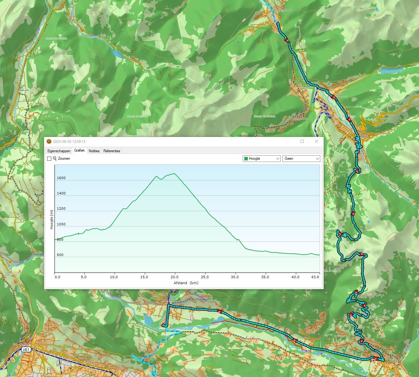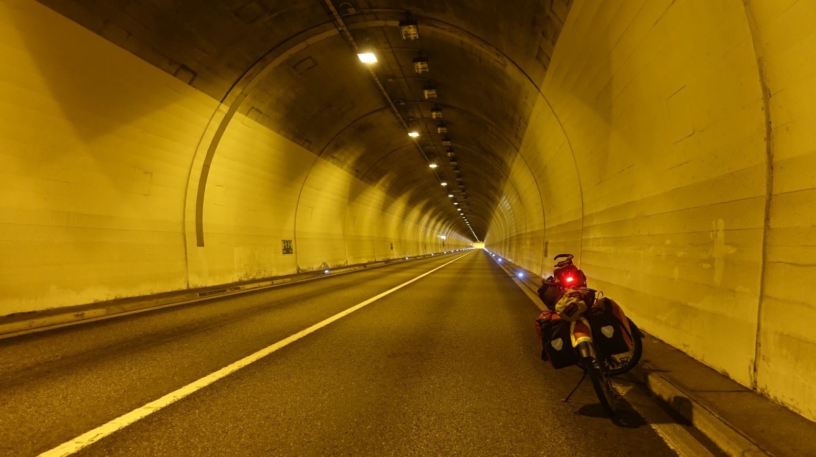 De klim naar de top was 10 km lang, waarna een afdaling van 45 km. Deels over een drukke weg met twee lange tunnels, dat was geen pretje.