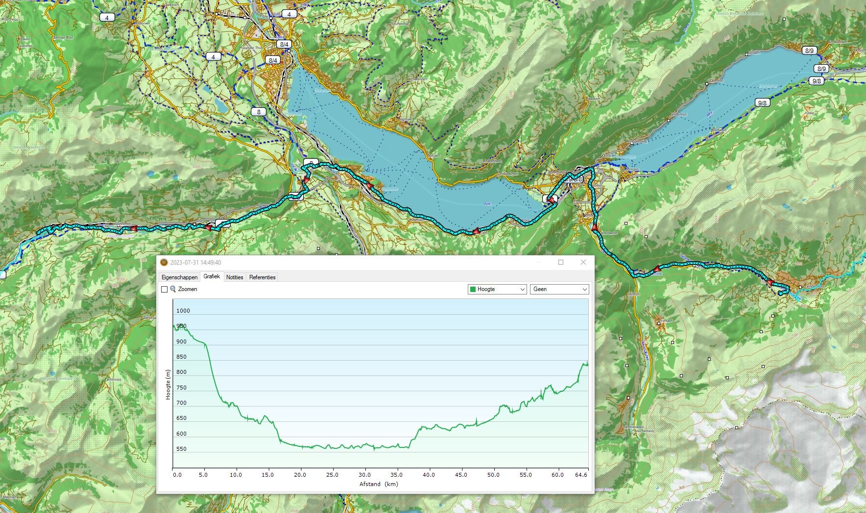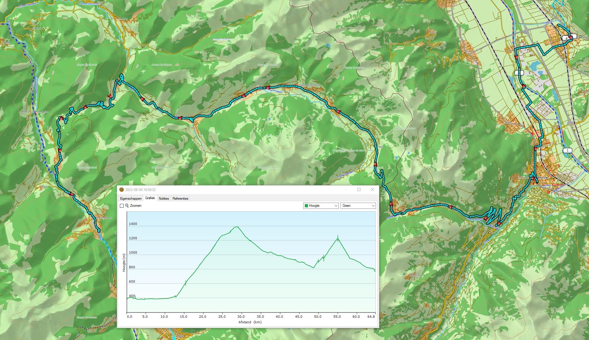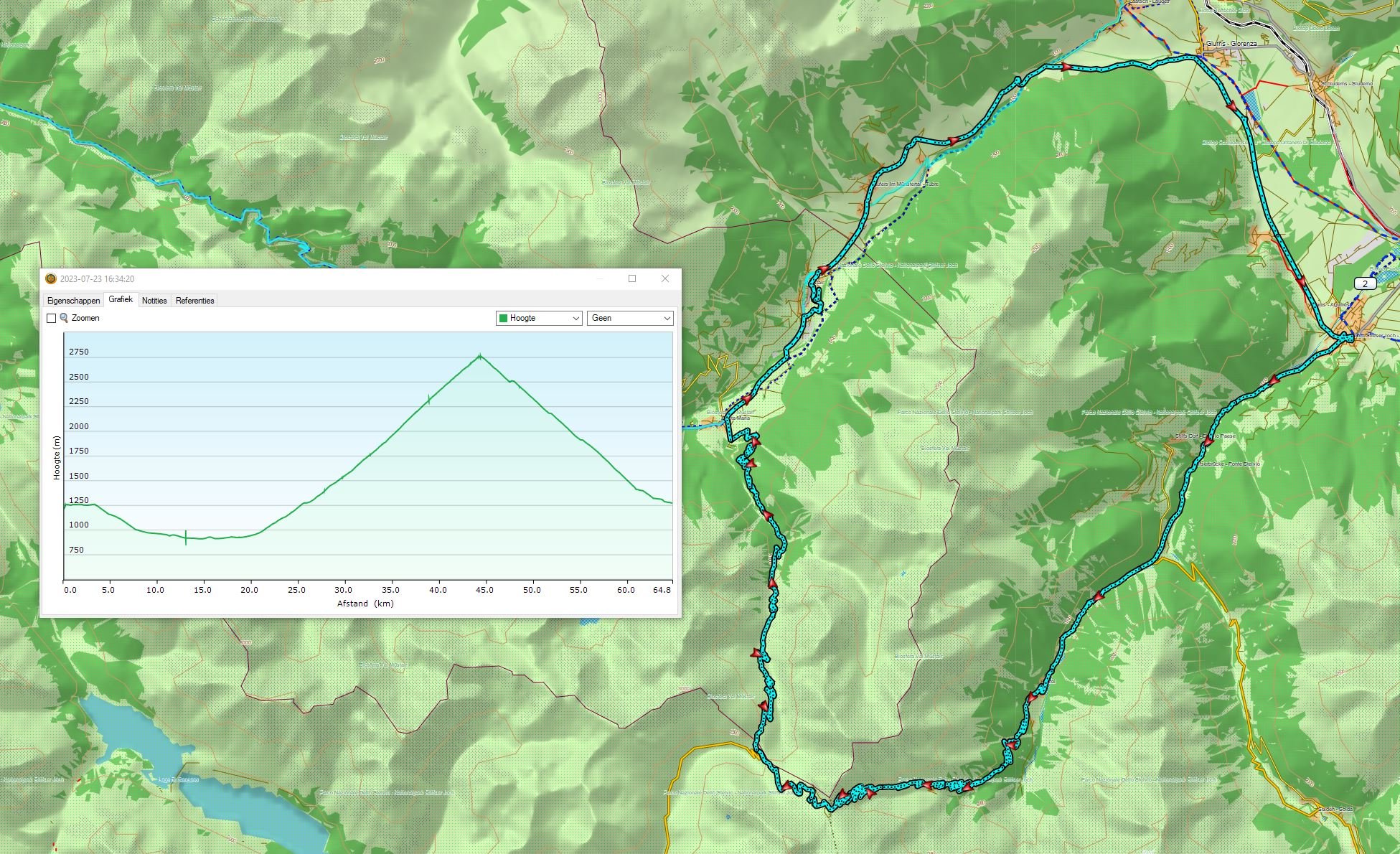 De klim naar de top was 10 km lang, waarna een afdaling van 45 km. Deels over een drukke weg met twee lange tunnels, dat was geen pretje.